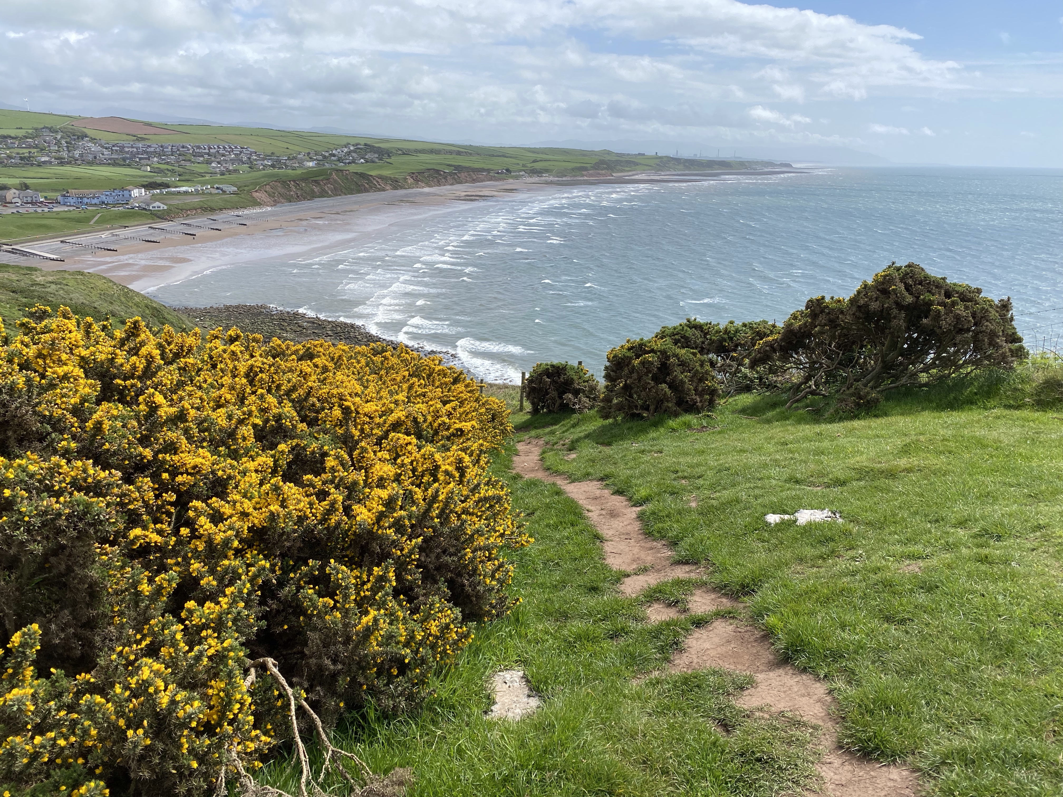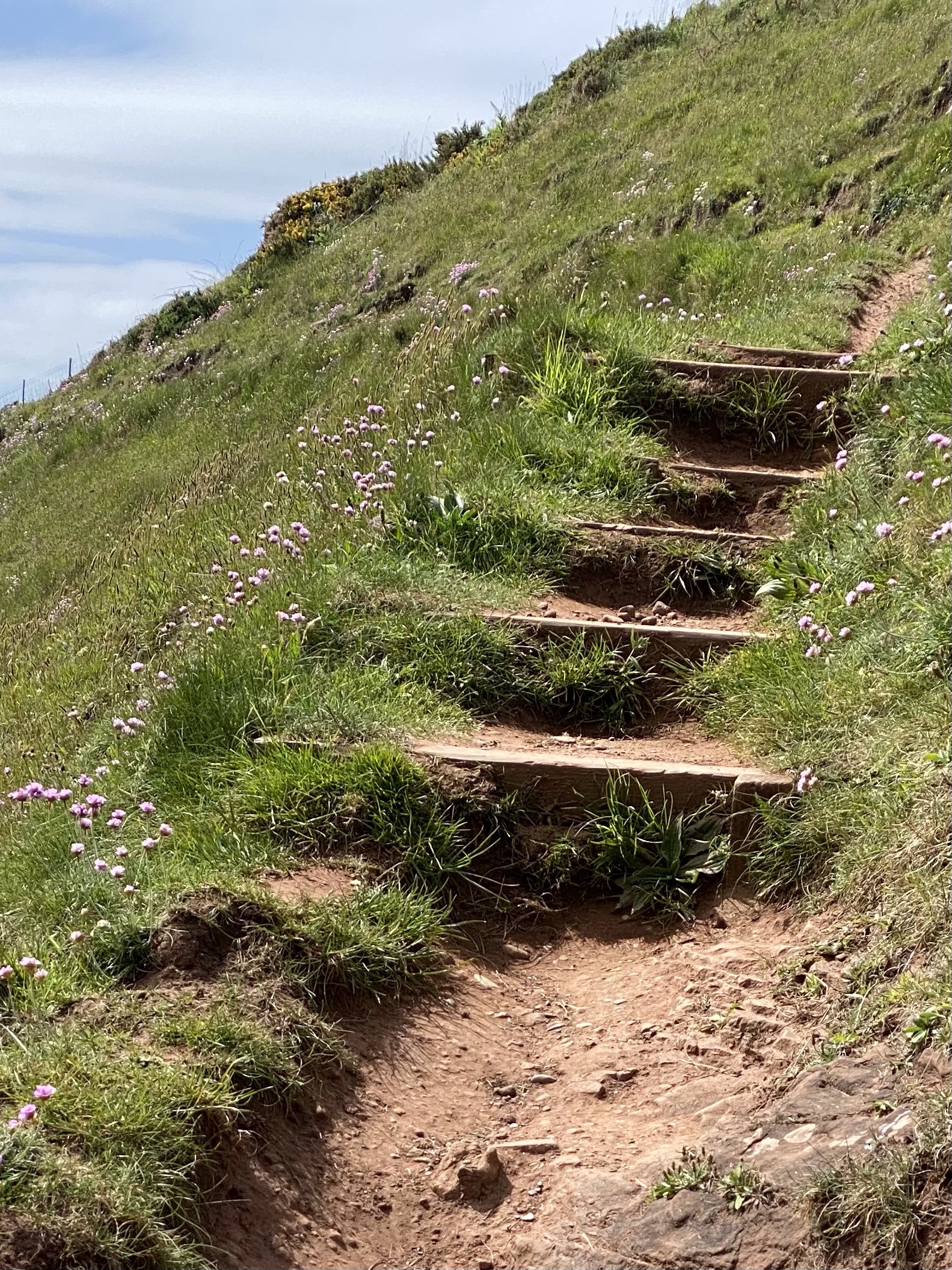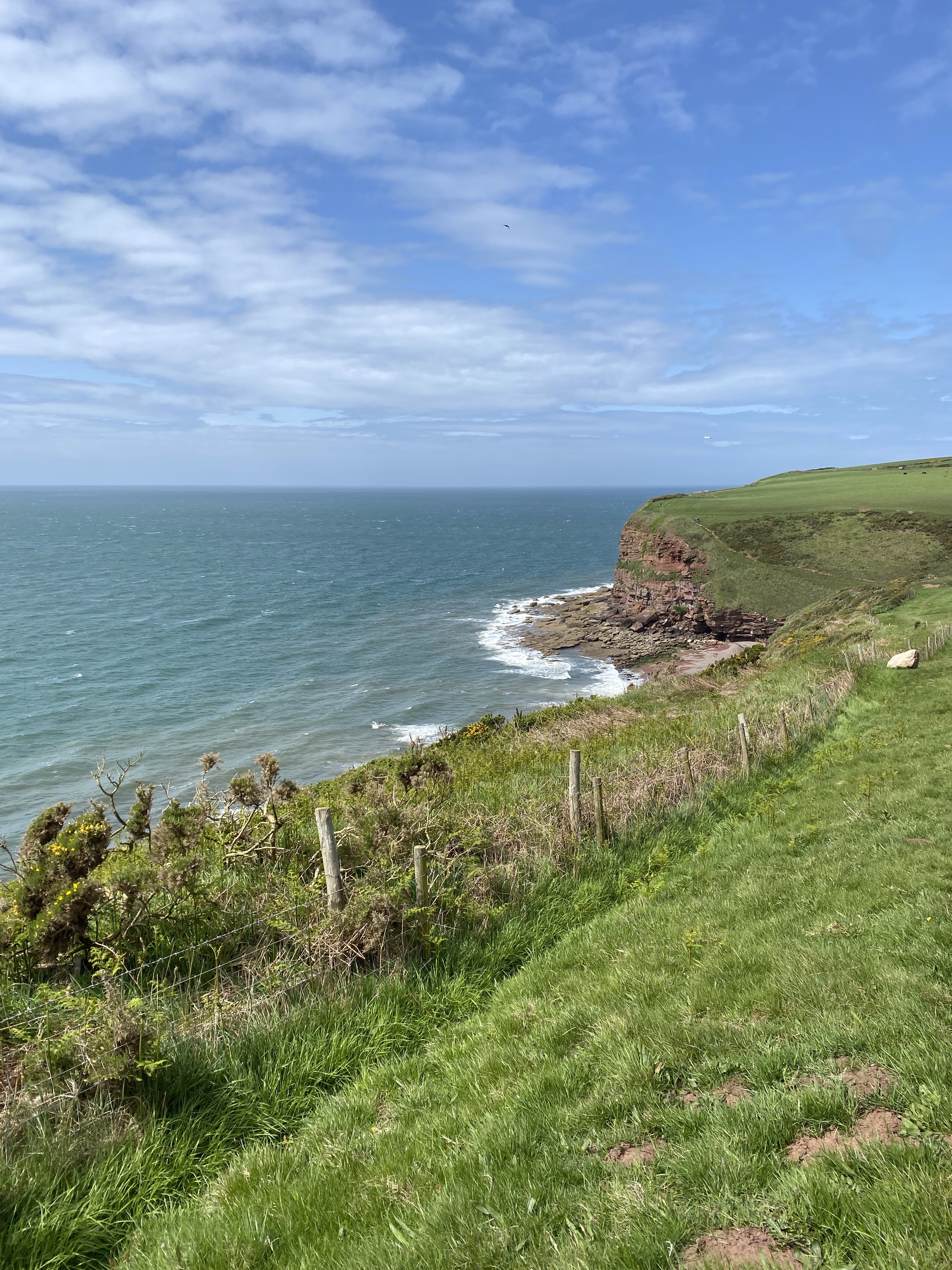 Our make-it-easier plan is that we did all the first day stuff and walked around St. Bees Head today. Tomorrow we start out and head straight east, so instead of one long day, we have two shorter days. The weather was a mixed bag today but not particularly unpleasant. It was sunny and lovely, then cloudy and cooler. As we went over the head, though, there was a very strong wind at our backs hurrying us along. It was fun to see the countryside that was enshrouded in mist and fog our other time. Leaving the coastline, we found our way along country roads back to St. Bees. Nancy and I both are tired enough we think we will sleep better tonight!