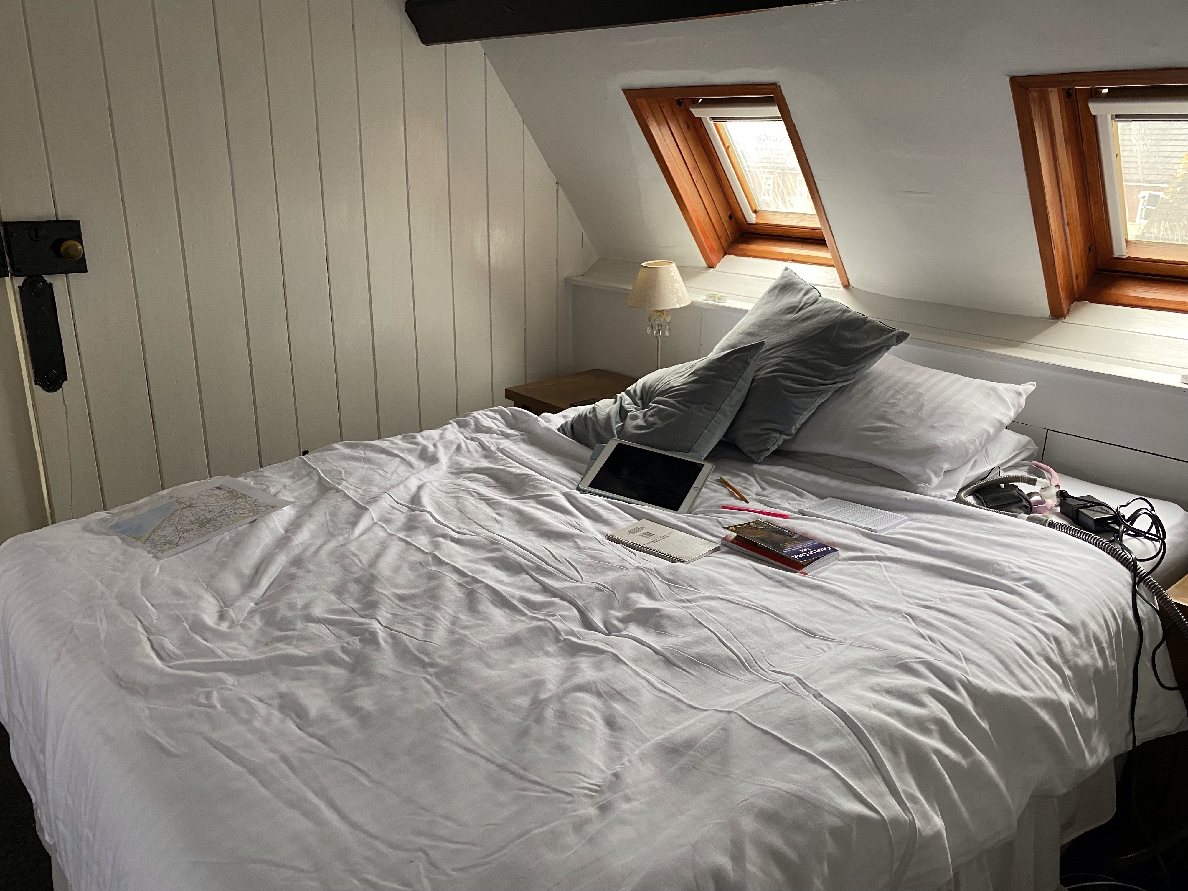 Nancy and I both had trouble sleeping last night, so we met before our agreed upon time to leave. That was a good thing because our train for St. Bees was leaving from Central Station, not Queen Street as we had been thinking. Central was only eight minutes walk away so with the directions from several people on street corners we made it with time to spare. We arrived in St. Bees, walked out of the station, looked right, and realized we were at our B&B. It is in the old railway station. My room looks out over the rail lines. It’s on the small side but has a large bathroom with both a shower and a tub.