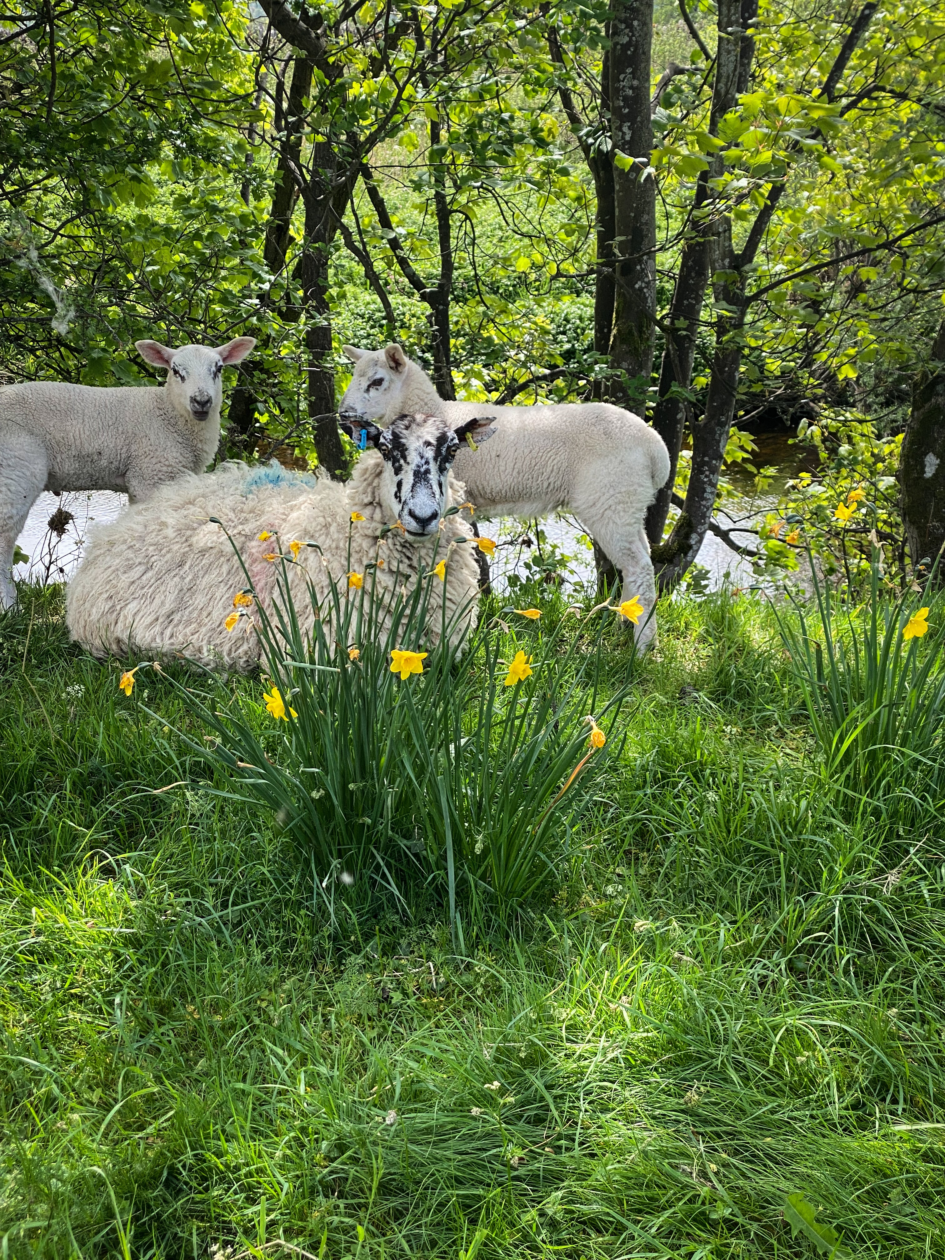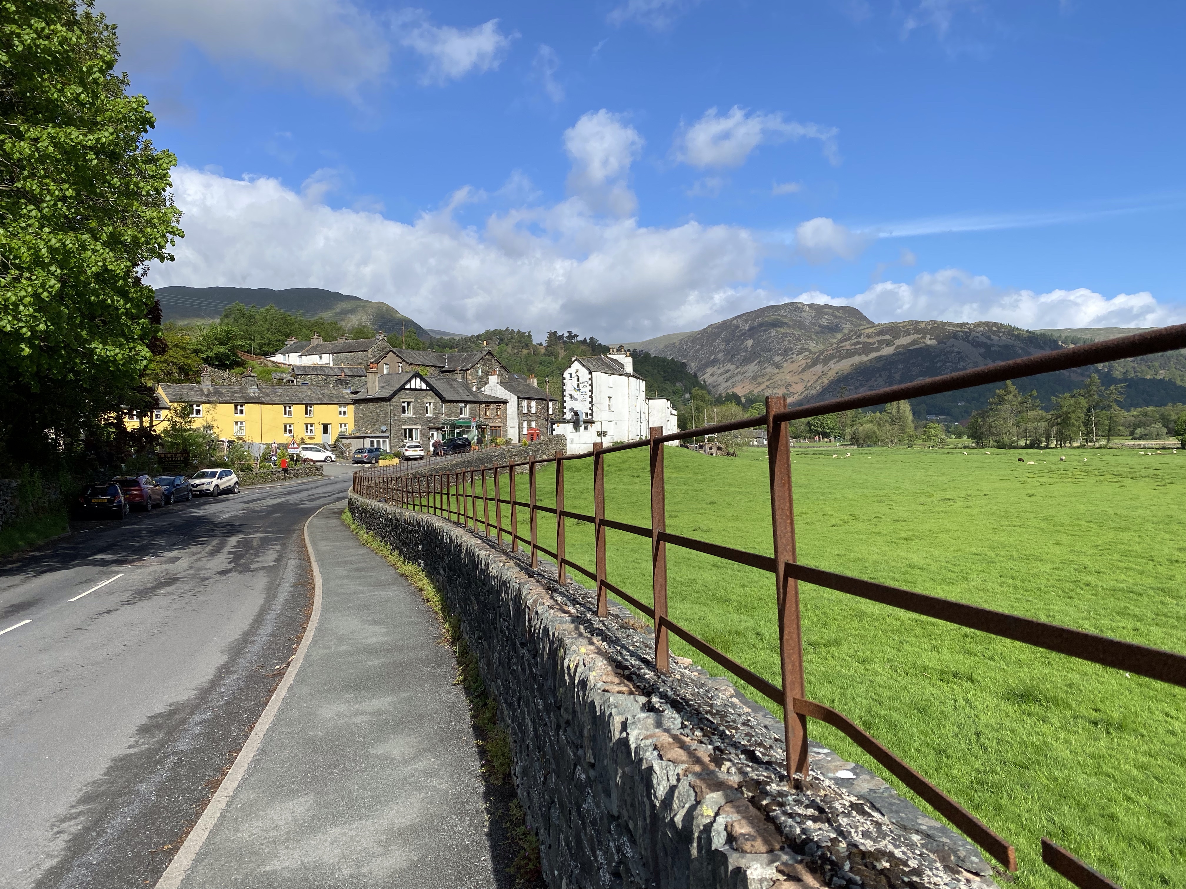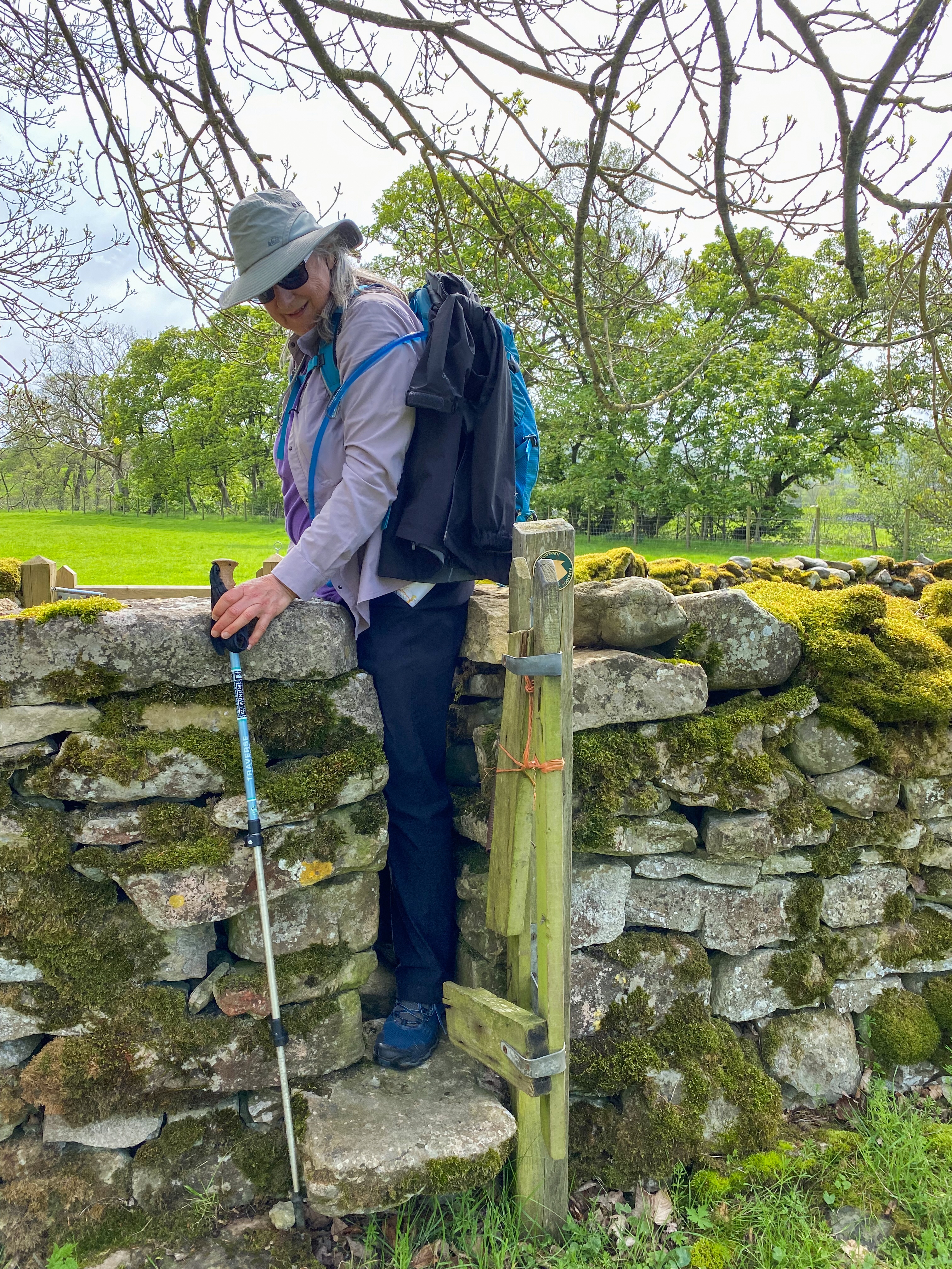 Our route from Pooley Bridge was up and over a moor and then down by narrow lanes through farmland. After we left Alan and Susan, we decided to take the paths rather than continue on the road. It was just beautiful and so peaceful as we made our way through the sheep pastures and a couple small hamlets. We should have counted how many stiles we crossed. By the end of the afternoon we were getting more than. a little tired of them. On one slit type stile, we had to remove our backpacks to get through. The sheep and lambs were so sweet, though, and we didn’t have to go through any fields with cows so we were very satisfied with our walk today.