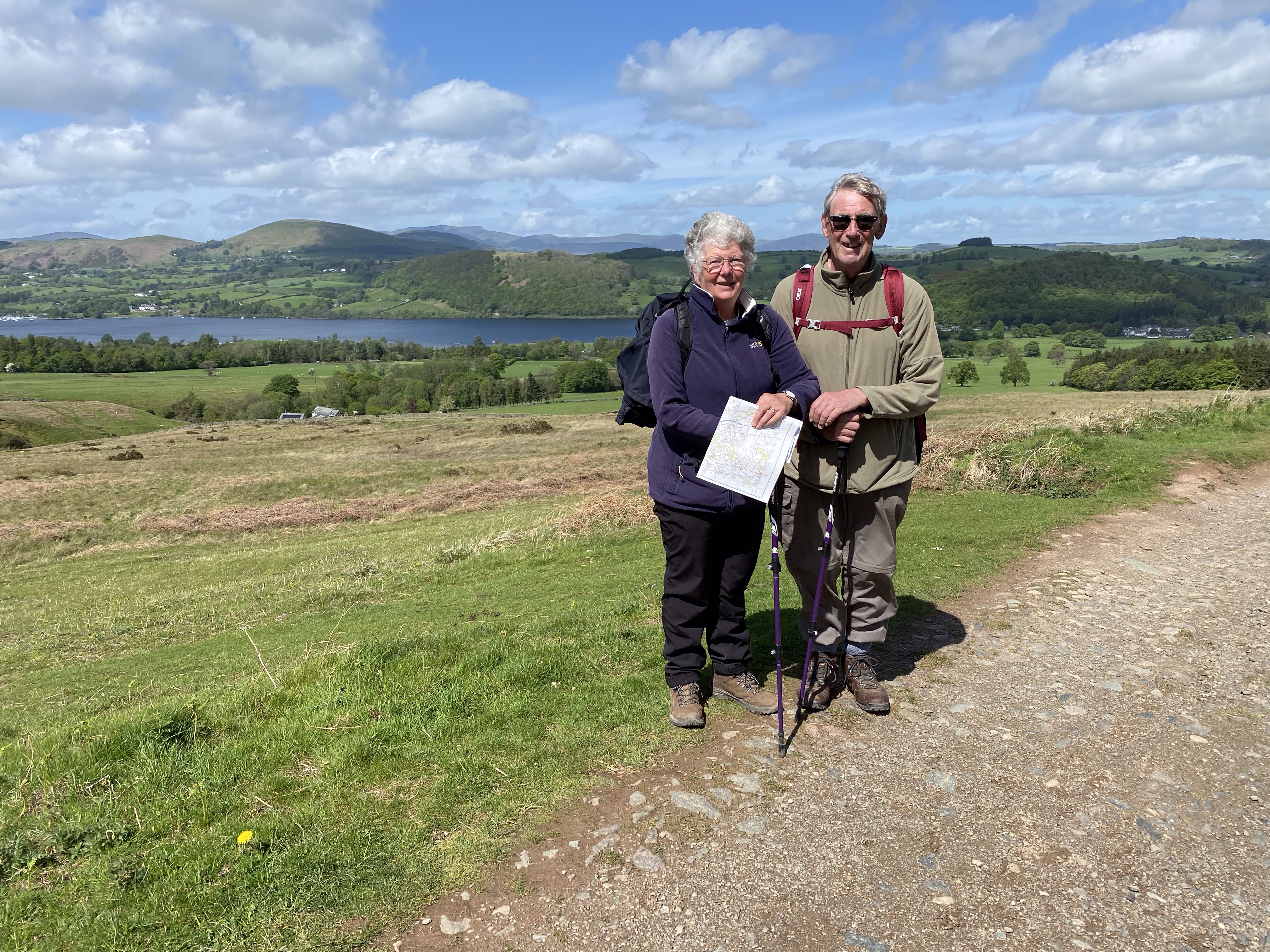 We walked on up to the bus stop and while waiting had the most delightful conversation with an older resident of Glenridding, a retired schoolteacher. We also met another American, Meg, from Utah. When I was out taking pictures before we left Patterdale this morning, I had actually met her husband on his way up to Kidsty Pike. They are the first and only Americans we have met so far. Meg was taking the bus because she knew her knees would not have been able to take it today after she had such a difficult time the past two days. Anyway, the three of us and the English lady had a good talk while we waited for the bus. On the bus, I had no sooner sat down when I noticed a couple waving at me from their side-facing seat. Back at St. Bees, we had met two English couples and talked to them quite a bit over breakfast. Alan and Susan had started to go up the path to Kidsty Pike today but soon realized it was too much for them so they turned back. The other couple they are traveling with went on but they took the bus to Pooley Bridge to just do the 10 miles cross country like we were doing. That is how we happened to walk with them for over halfway to Shap. Susan is also a retired schoolteacher and is a master map reader. She guided us right along and made sure we were headed in the right direction when we parted. Nancy and I enjoyed talking with them so much.