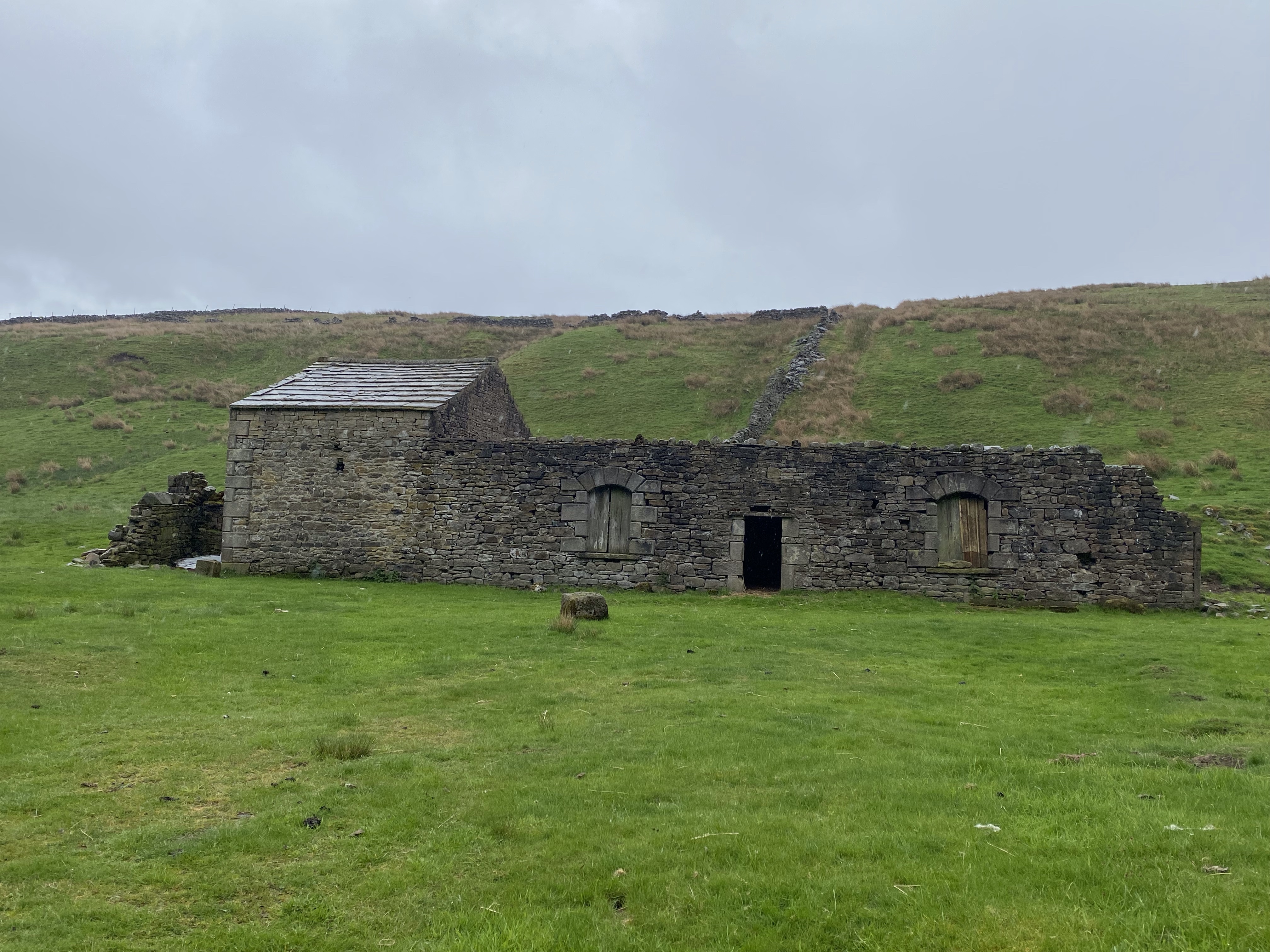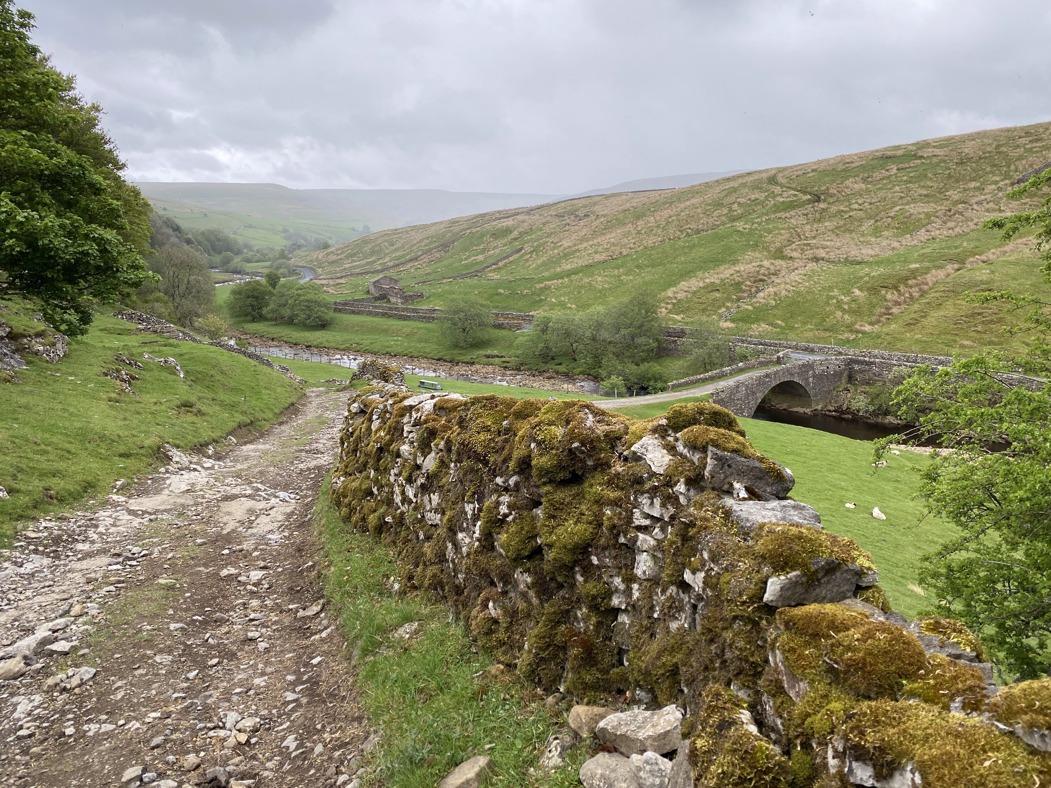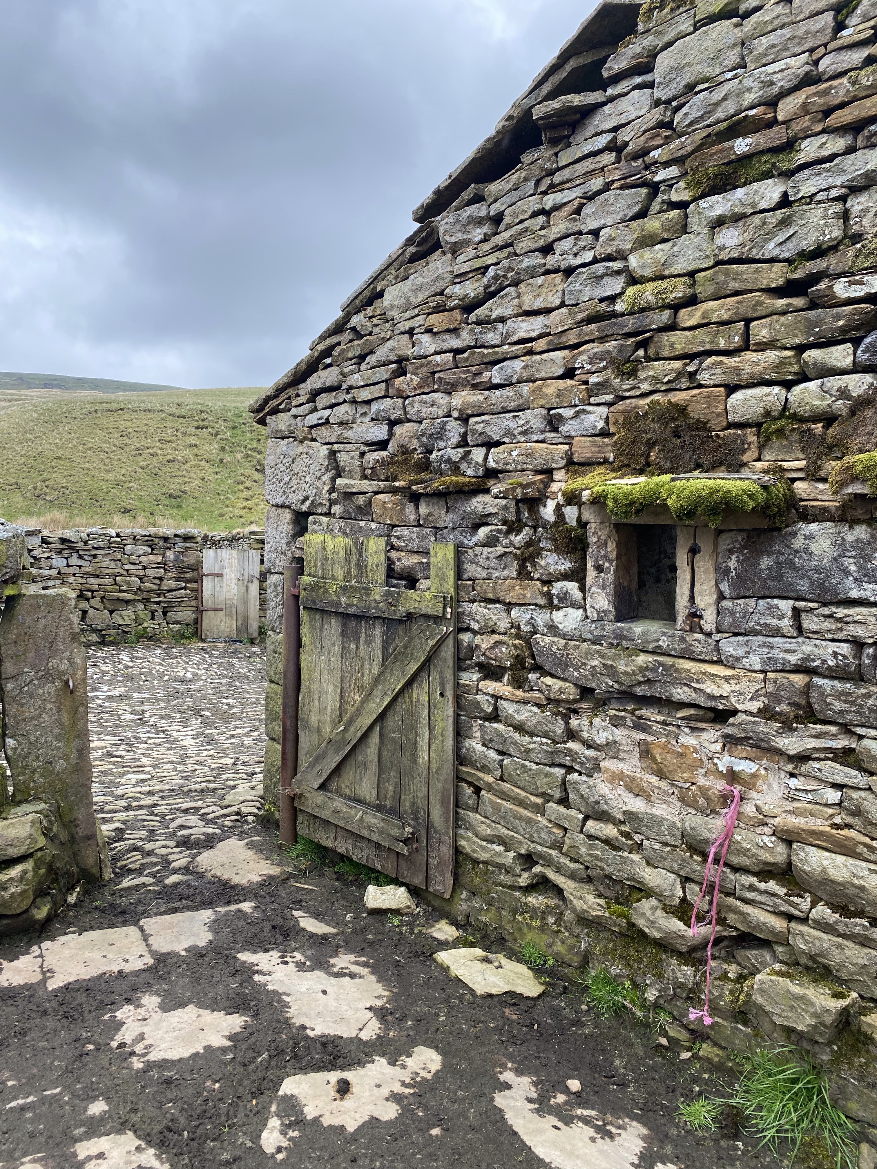 The trail took us through more muddy and boggy fields and at a high point we could see Ravenseat, the home of “The Yorkshire Shepherdess.” She is well known in these parts as she has written books, the family did a reality show on TV, and they sometimes sell refreshments to walkers. We stopped here for cream teas in 2015 but they were closed today so we just passed on through. We were pleased to see that at Ravenseat and just beyond, they are making improvements to the trail.