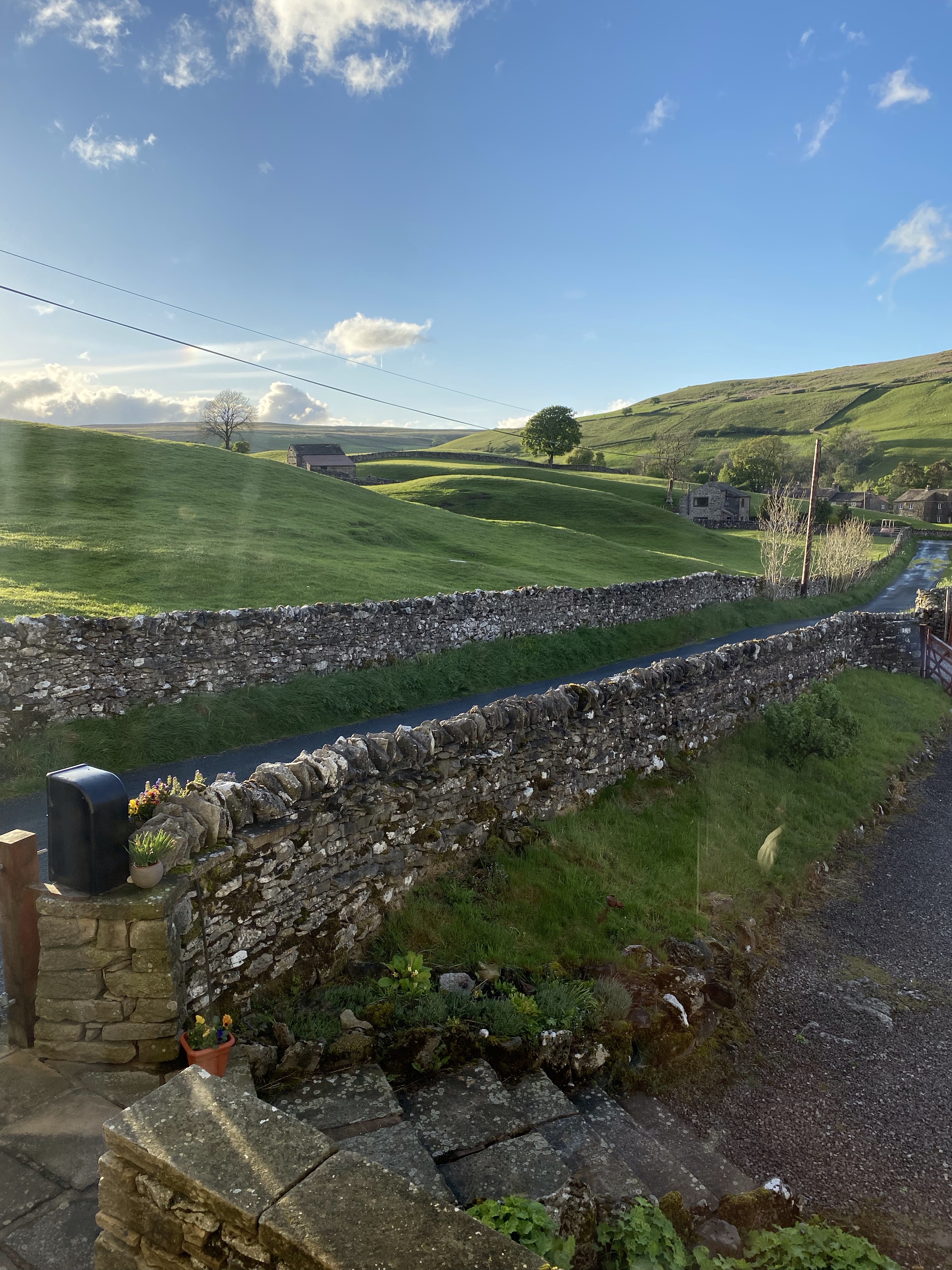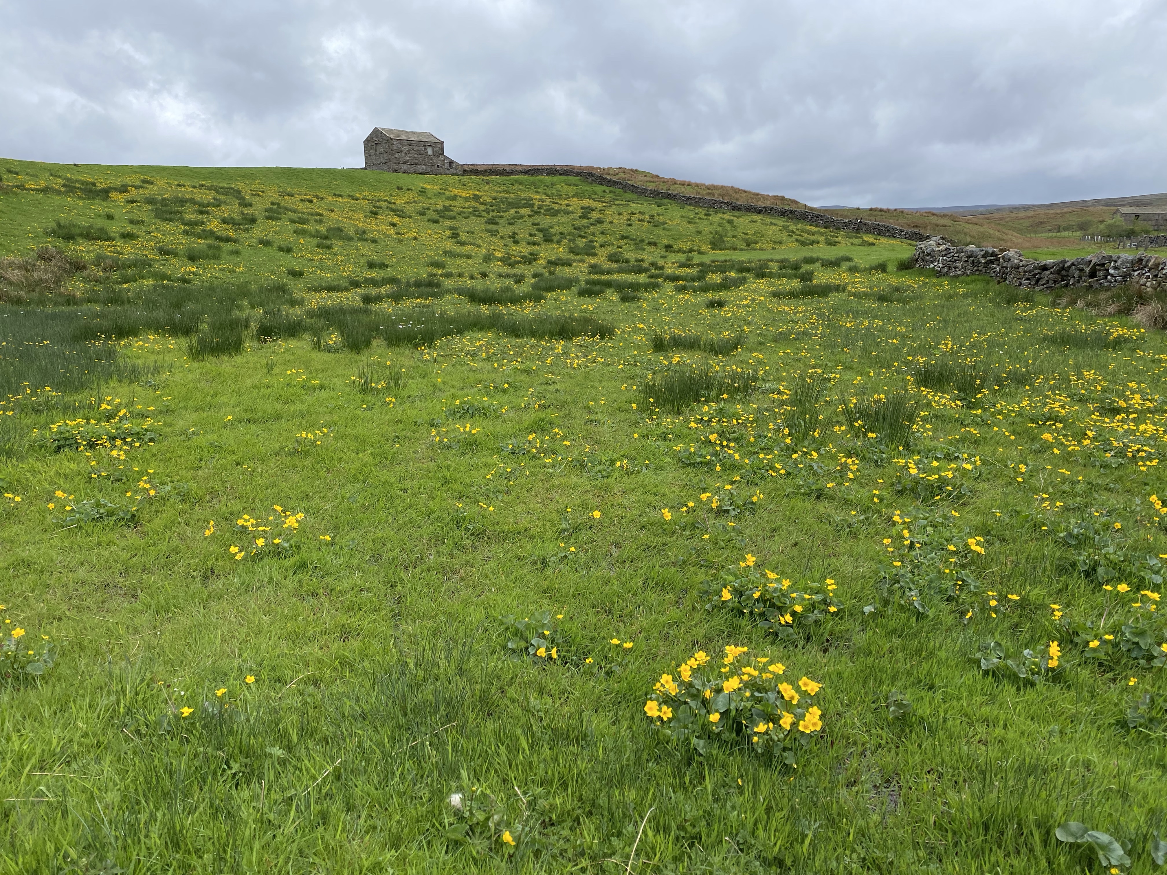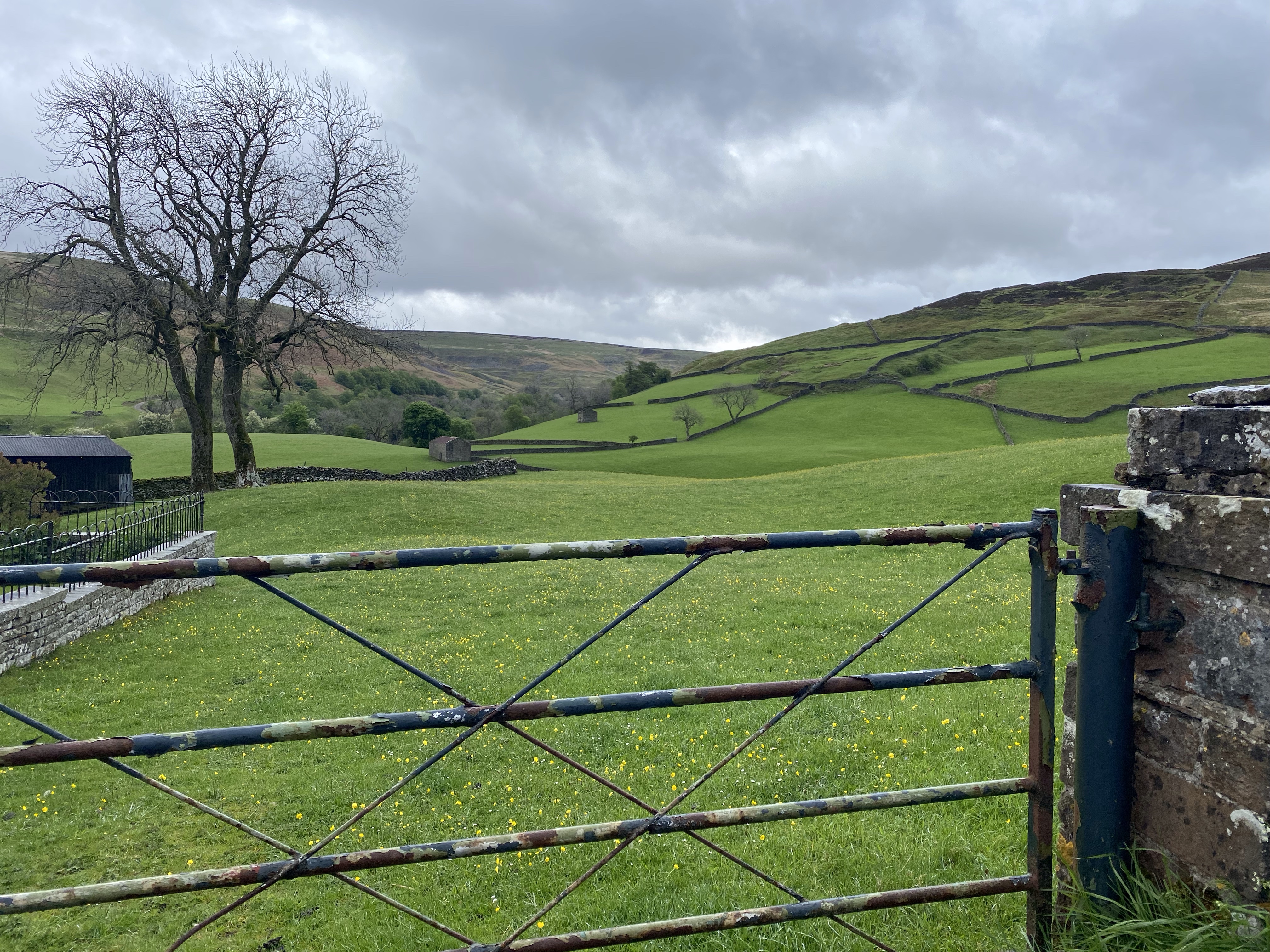 The trail took us through more muddy and boggy fields and at a high point we could see Ravenseat, the home of “The Yorkshire Shepherdess.” She is well known in these parts as she has written books, the family did a reality show on TV, and they sometimes sell refreshments to walkers. We stopped here for cream teas in 2015 but they were closed today so we just passed on through. We were pleased to see that at Ravenseat and just beyond, they are making improvements to the trail.