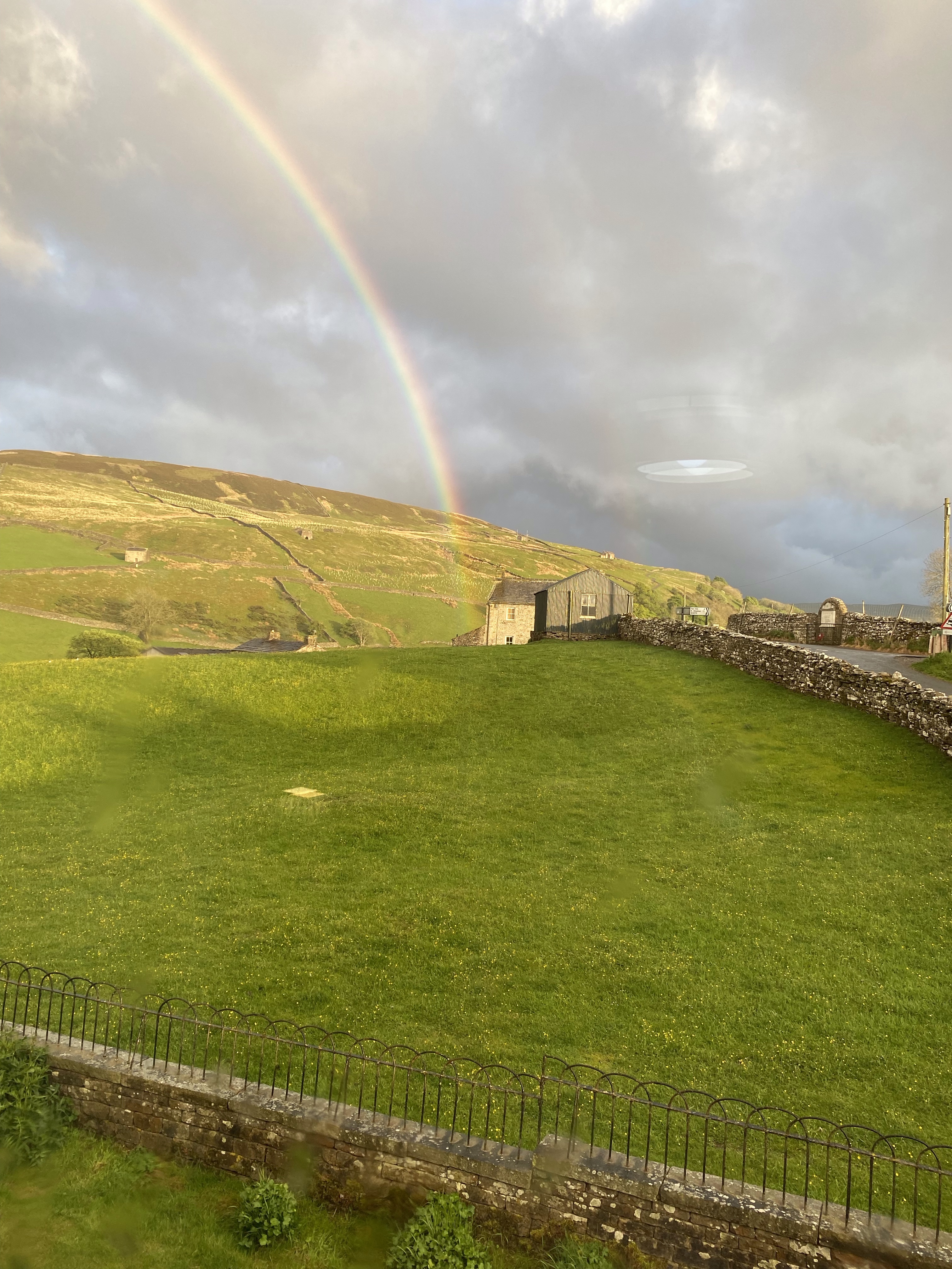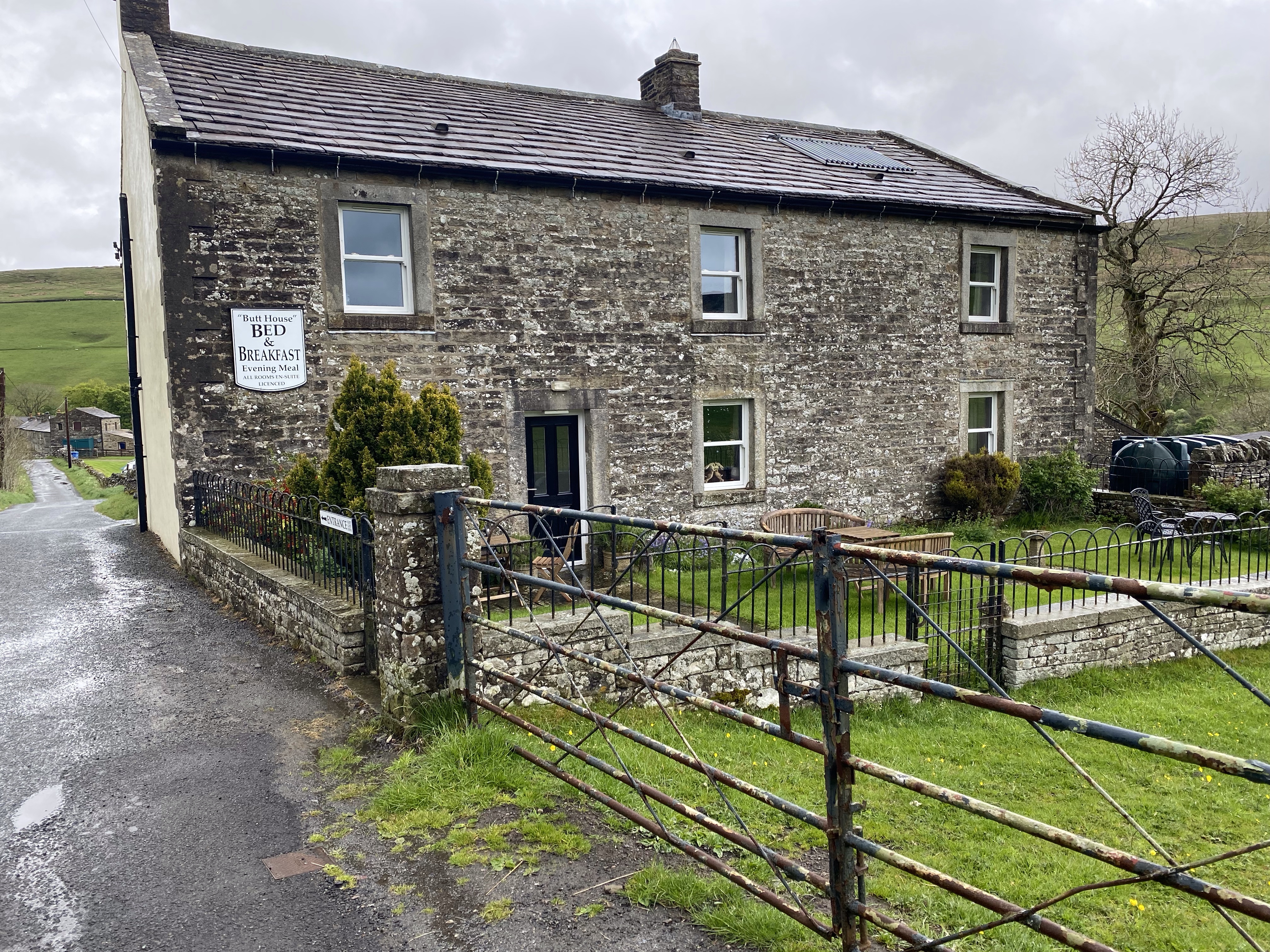 The last hour of our walk, it actually started raining—not a downpour but a steady rain, heavier than earlier in the day. We trudged on in to Keld and found our accommodation right by the road. I took a nice long soak in the bathtub before dinner. Our host, Jackie, really knows how to get people together. All 7 guests sat at one table to eat, and it was so much more convivial than everyone sitting at their separate little tables. It was a very enjoyable evening meal. Chris, the husband, did the cooking. I had lamb shepherds pie with steamed vegetables and ice cream. Simply delicious!