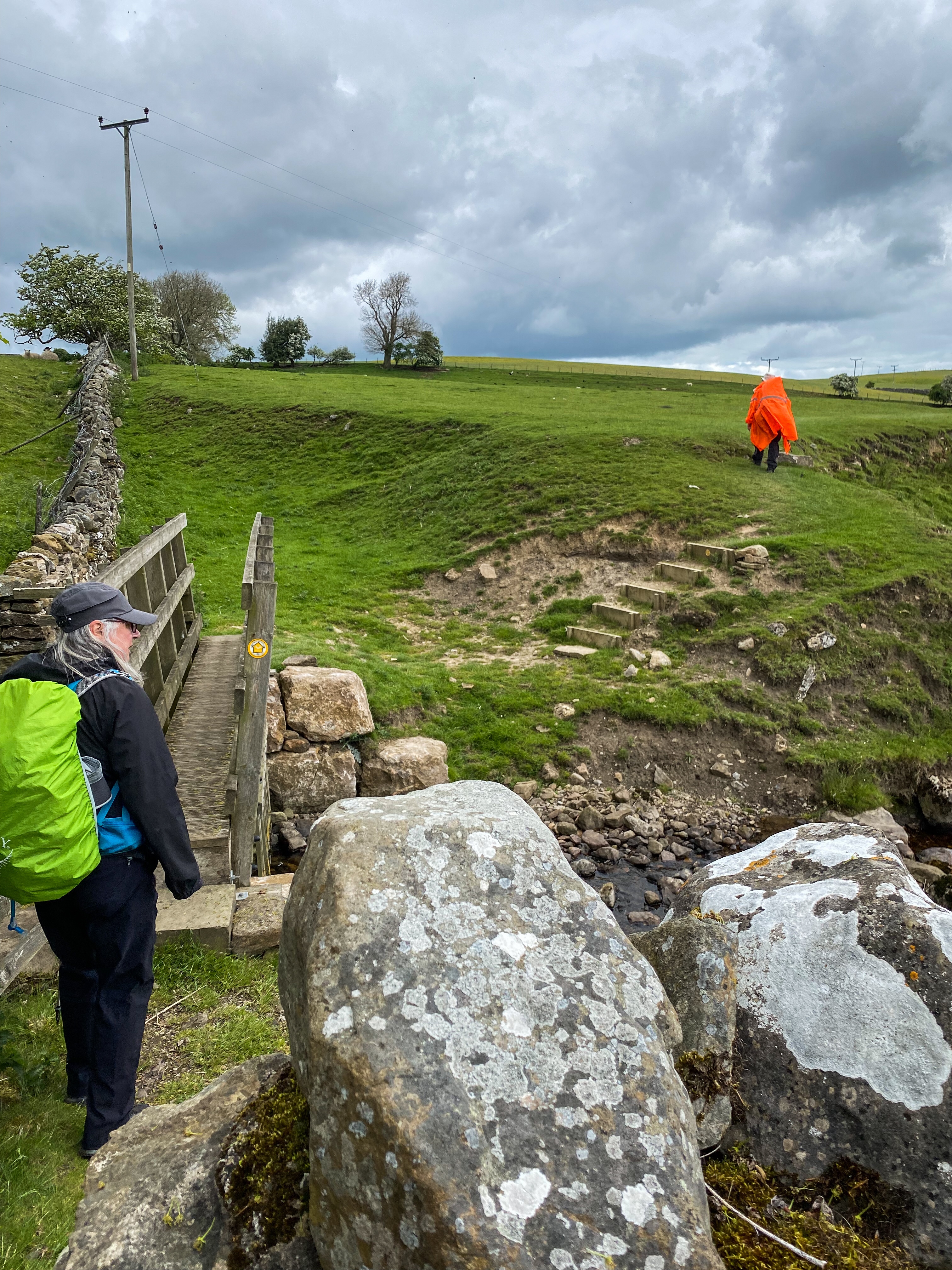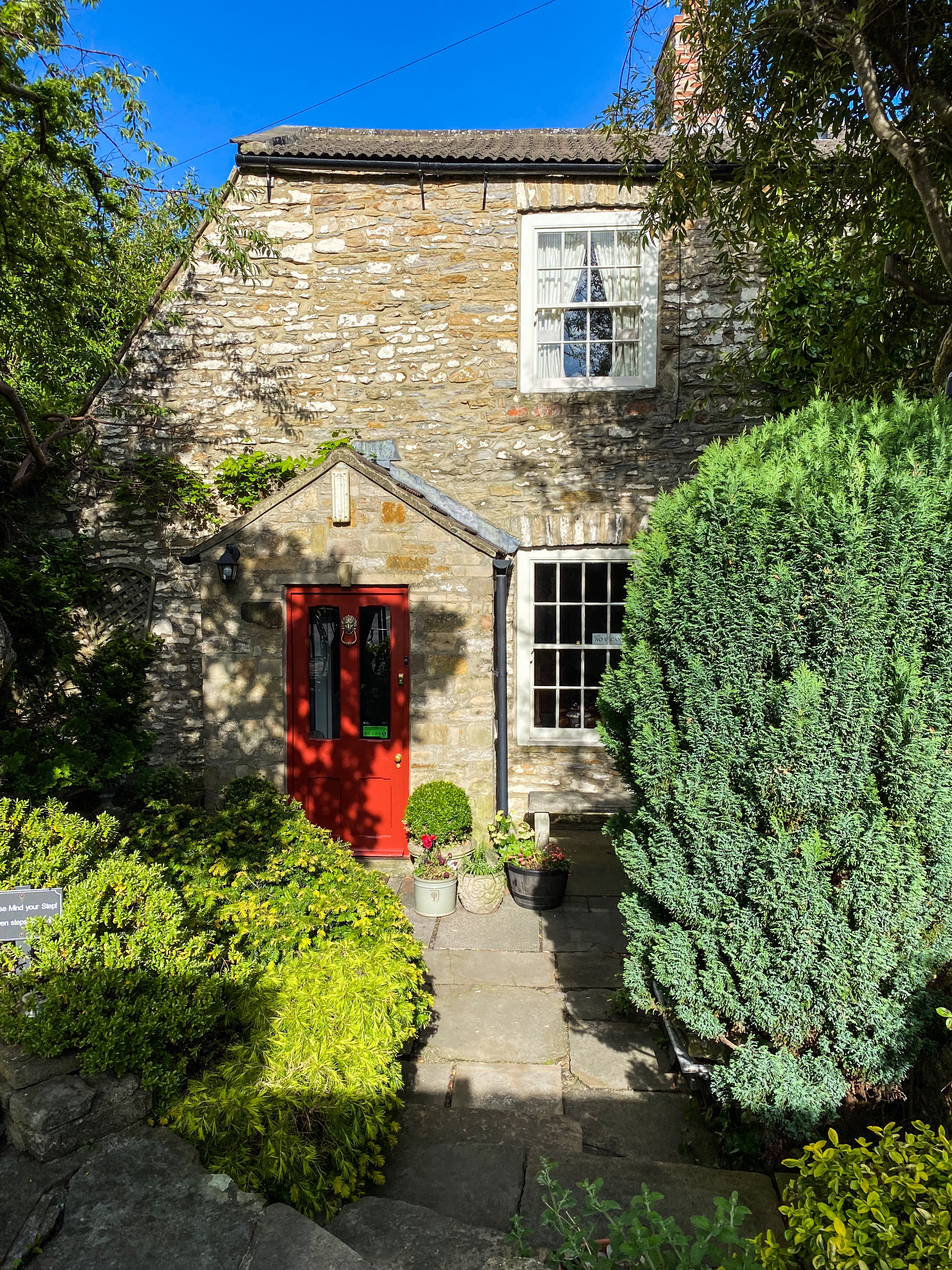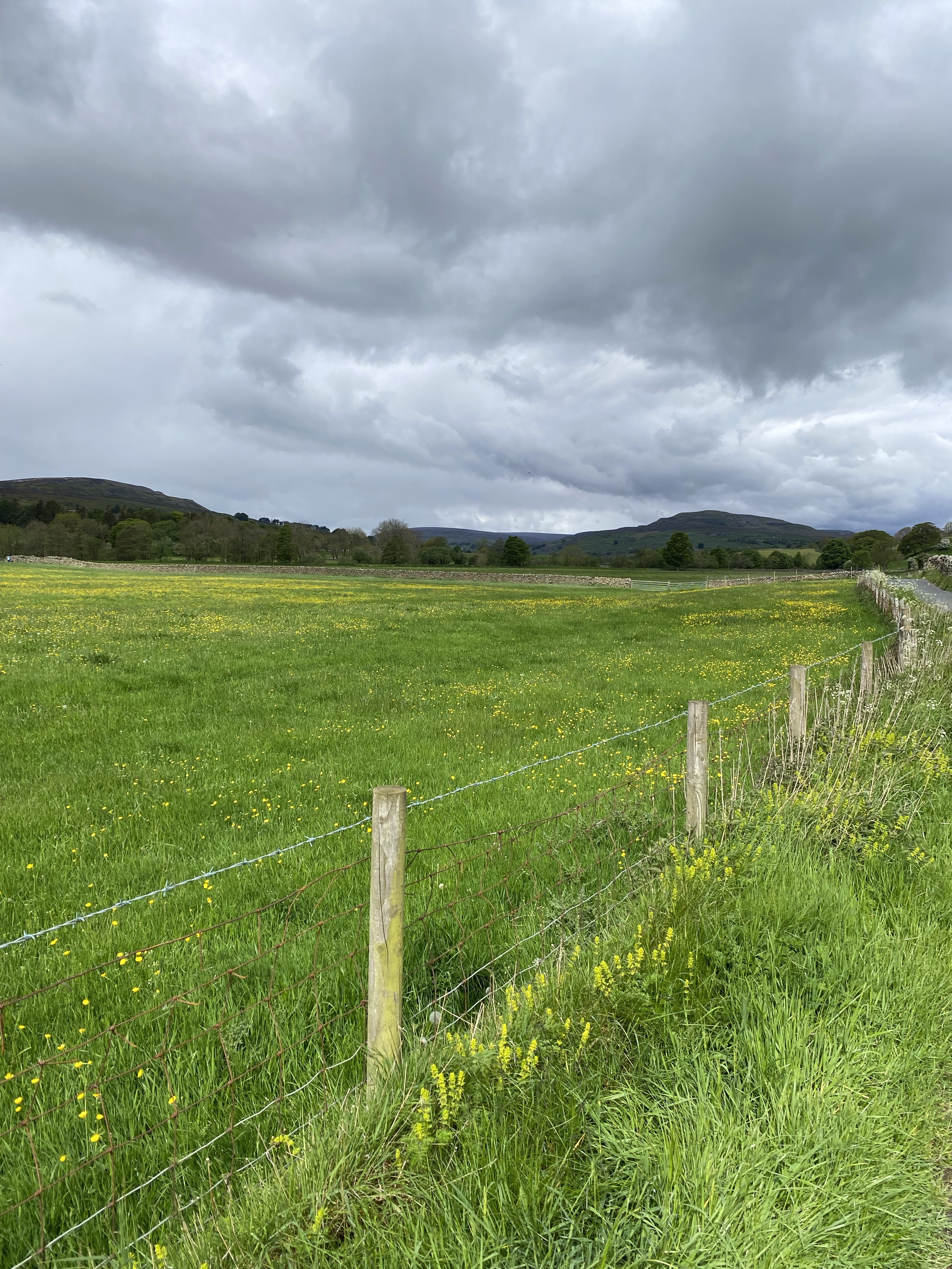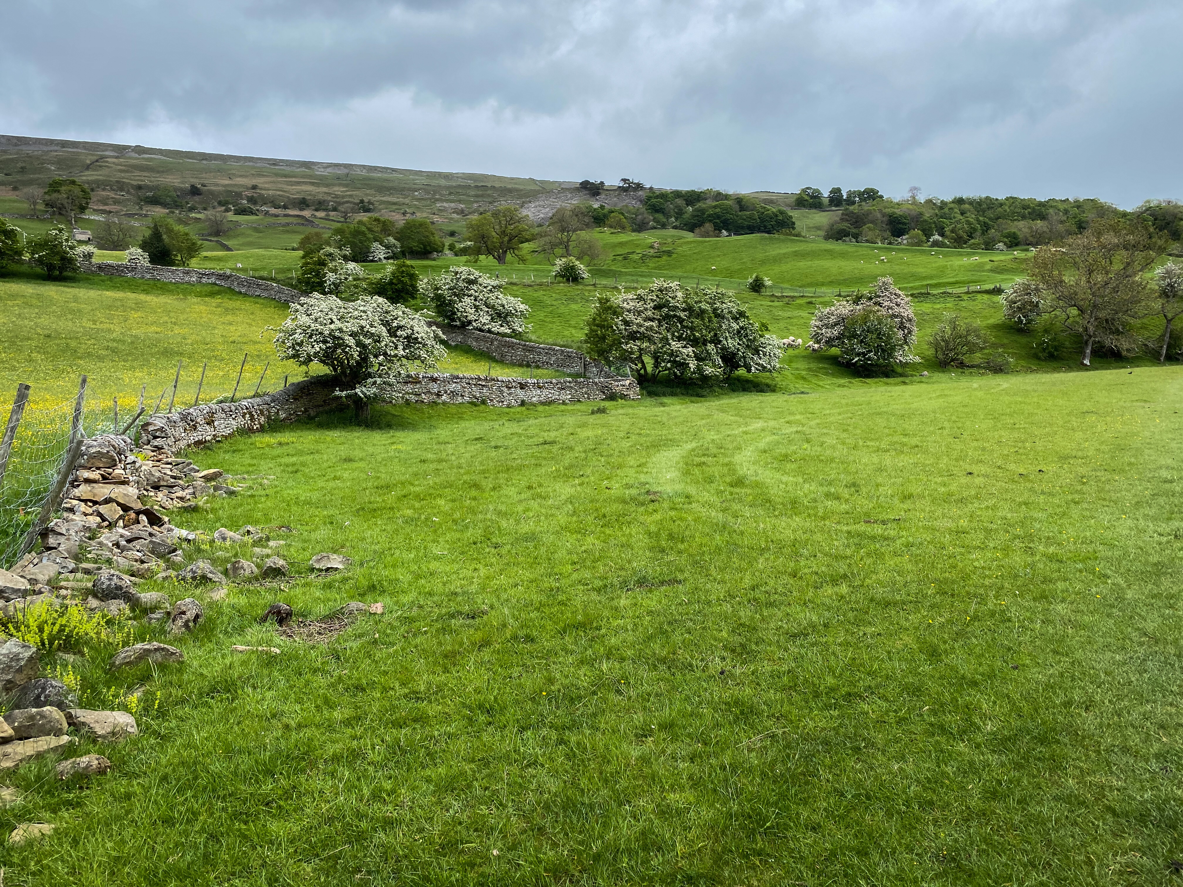Most of the day was spent walking through pastures and squeezing through stiles. Busy talking, we missed one stile at a road crossing, so we just followed the road into town where we got back on the trail. It was actually an easier walk as we didn’t have to climb up on that part. Not having slept well last night, I was getting pretty tired by the time we got to Richmond. (It’s amazing to me how we can be so tired at the end of the day’s walk but after a good night’s sleep, we wake up in the morning ready to go again.) I had planned on going to see the castle this time since I didn’t in 2015. I was so tired, though, I opted for a hot shower and rest before we went out to eat. In Richmond, we are the only guests at Nuns Cottage. It is a very comfortable place near the downtown center and best of all, our host had fresh-out-of -the-oven scones for a cream tea for us when we arrived. They tasted heavenly! Tomorrow I’m having a home baked cinnamon “whirl” with my breakfast.