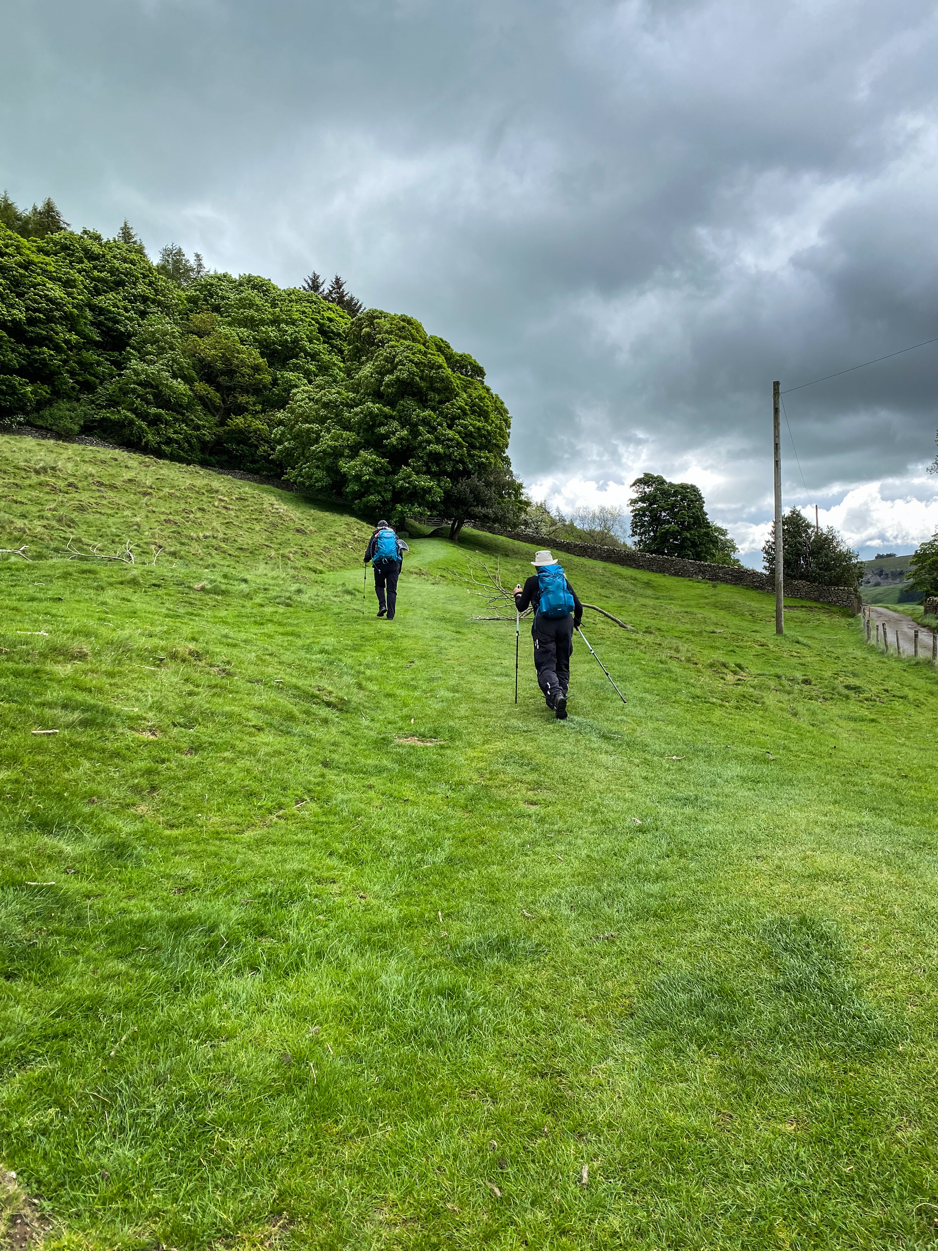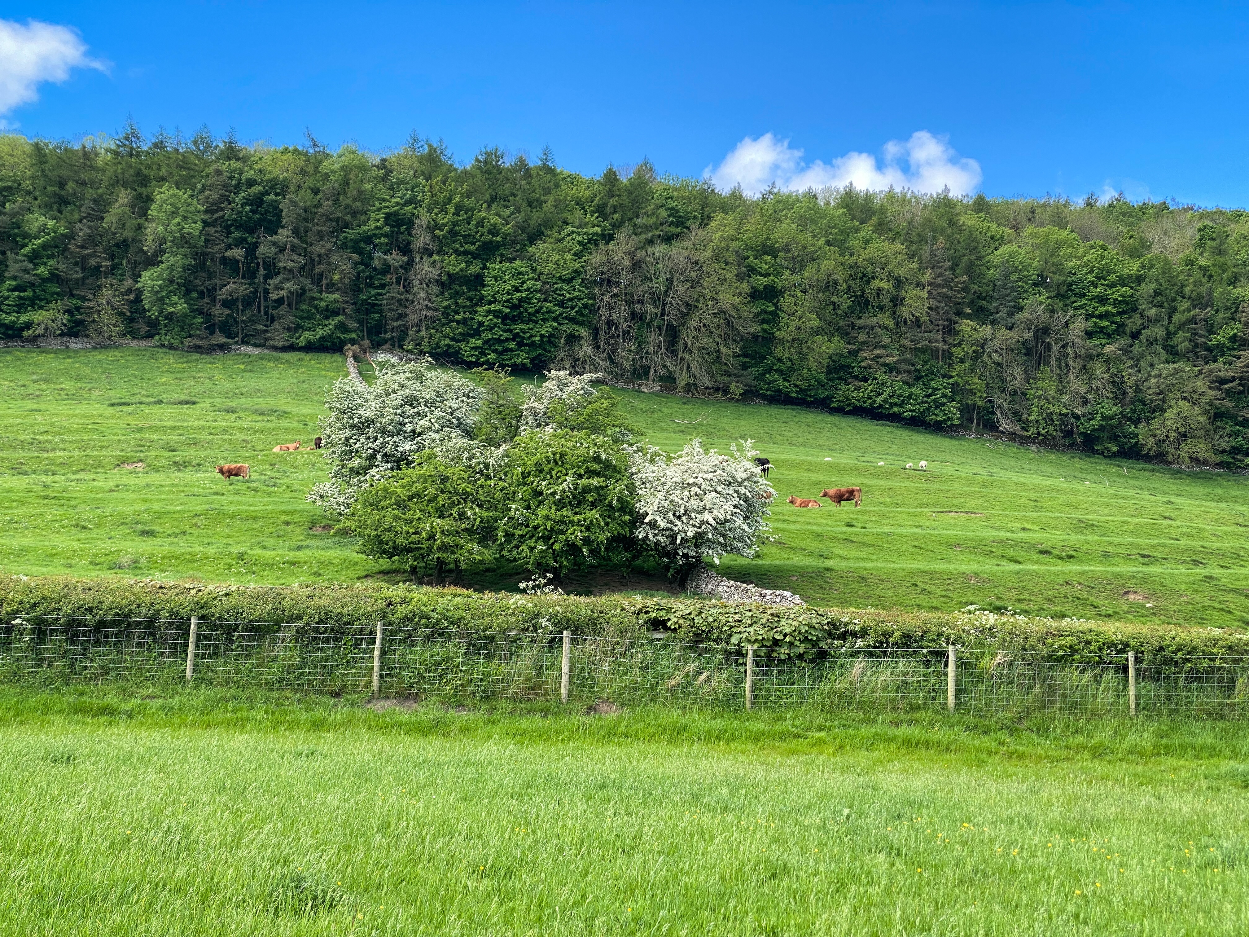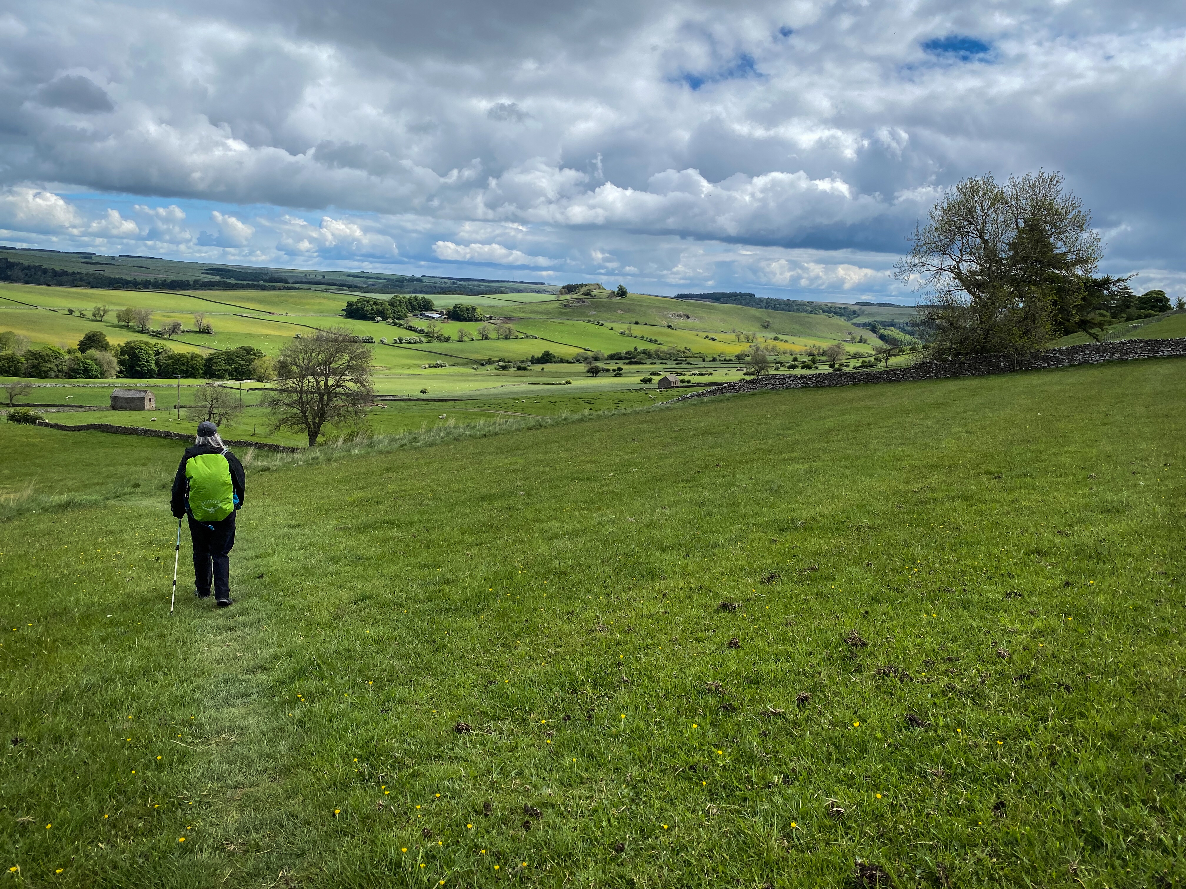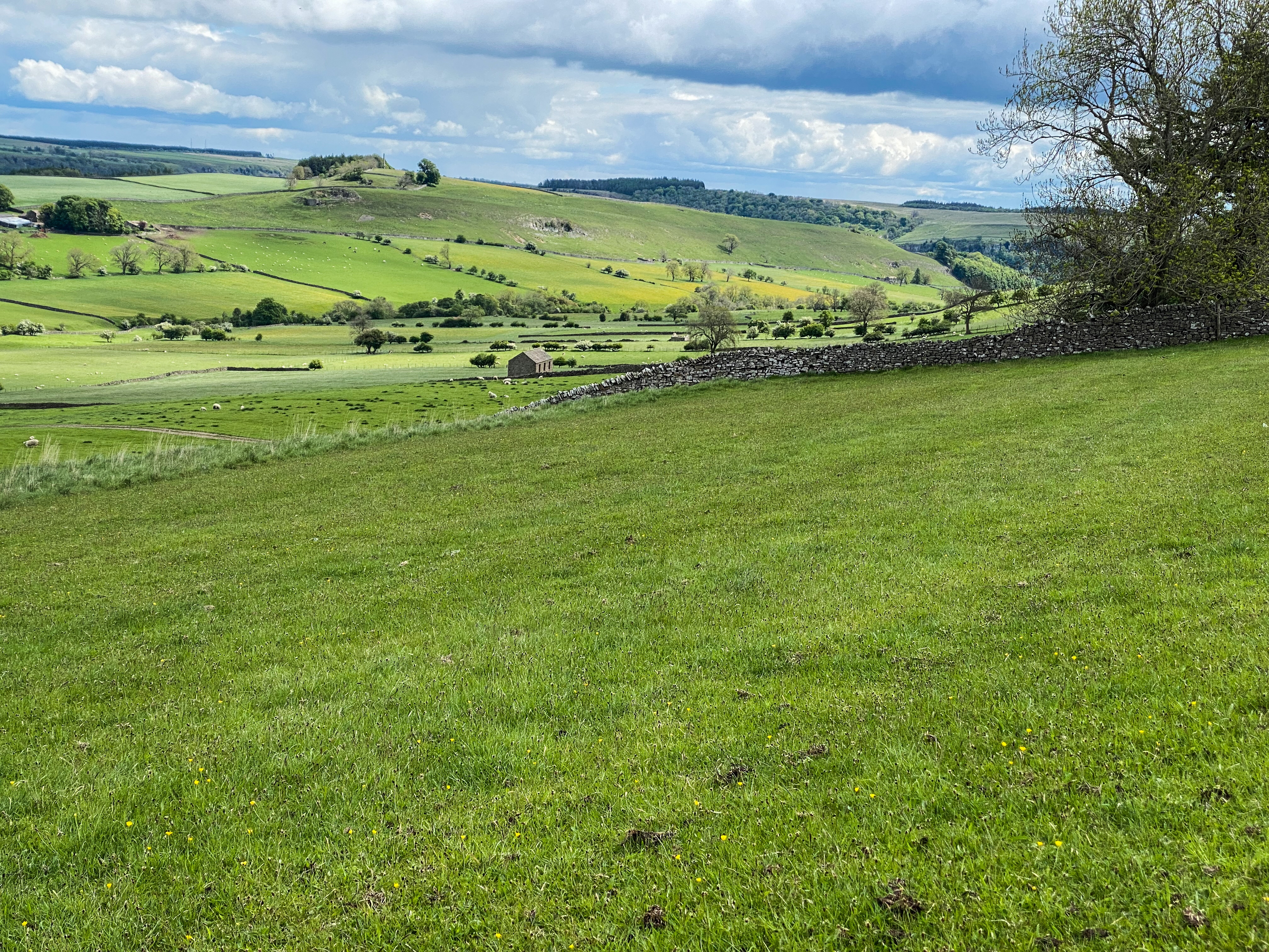 Most of the day was spent walking through pastures and squeezing through stiles. Busy talking, we missed one stile at a road crossing, so we just followed the road into town where we got back on the trail. It was actually an easier walk as we didn’t have to climb up on that part. Not having slept well last night, I was getting pretty tired by the time we got to Richmond. (It’s amazing to me how we can be so tired at the end of the day’s walk but after a good night’s sleep, we wake up in the morning ready to go again.) I had planned on going to see the castle this time since I didn’t in 2015. I was so tired, though, I opted for a hot shower and rest before we went out to eat. In Richmond, we are the only guests at Nuns Cottage. It is a very comfortable place near the downtown center and best of all, our host had fresh-out-of -the-oven scones for a cream tea for us when we arrived. They tasted heavenly! Tomorrow I’m having a home baked cinnamon “whirl” with my breakfast.