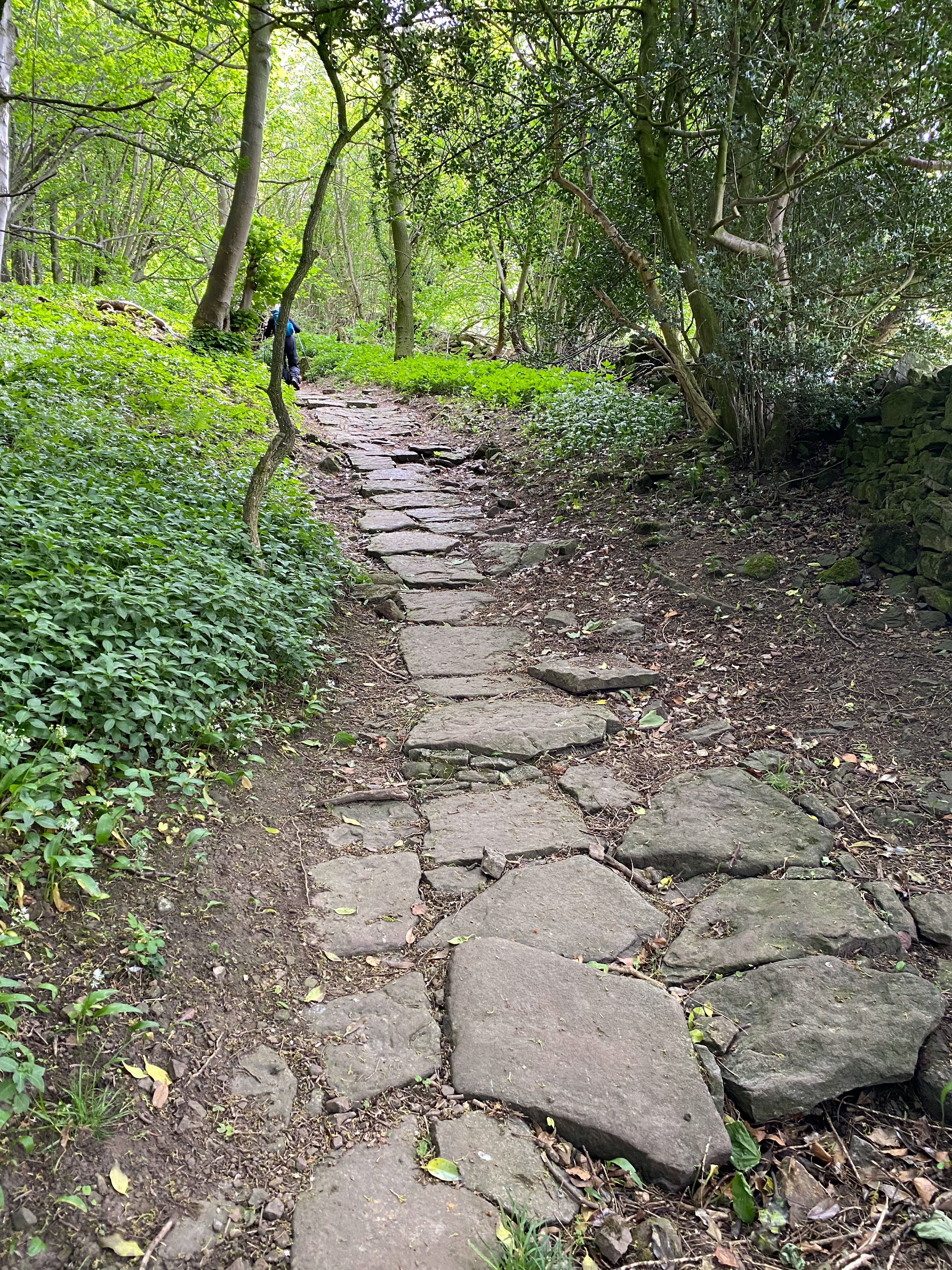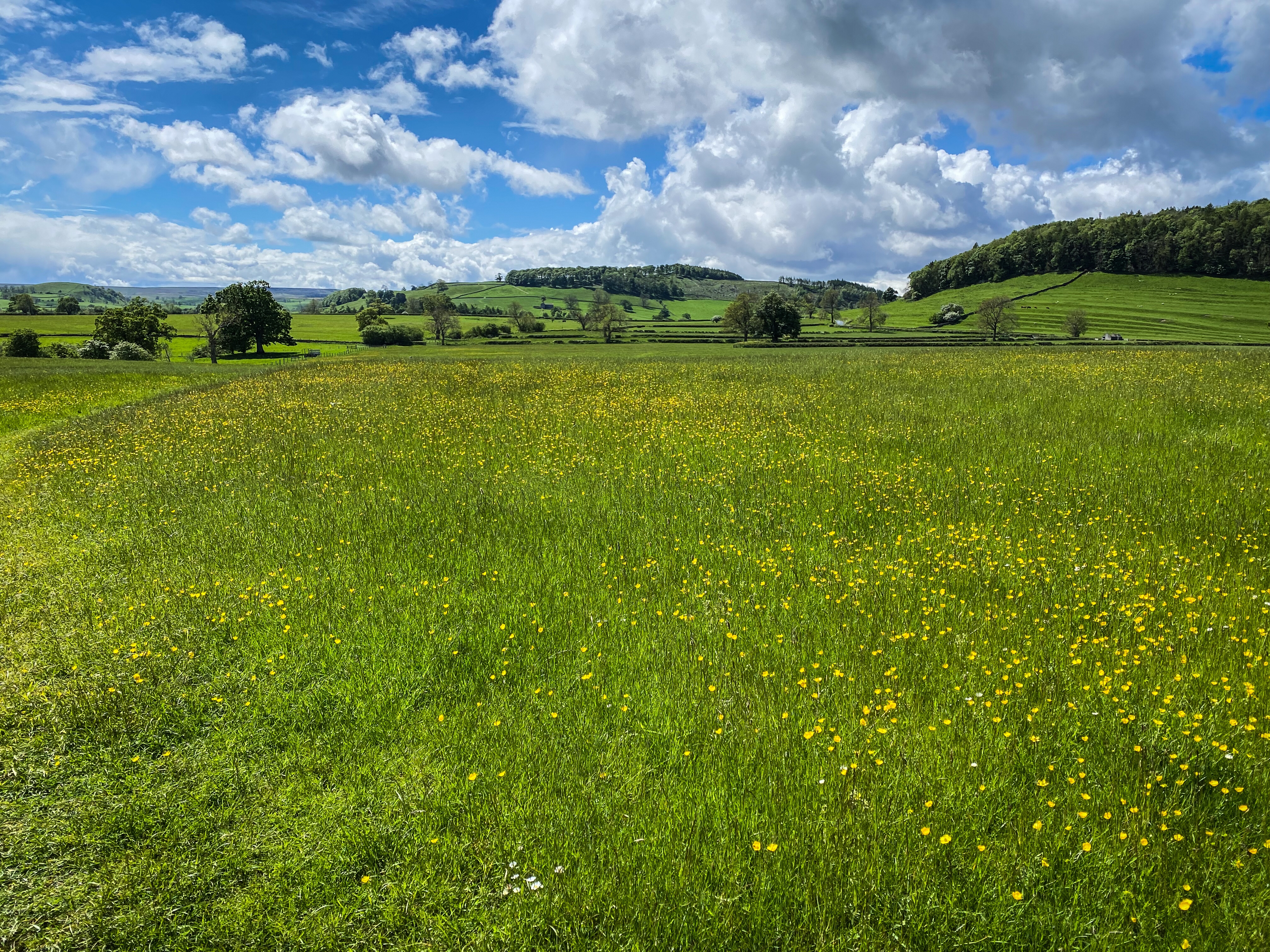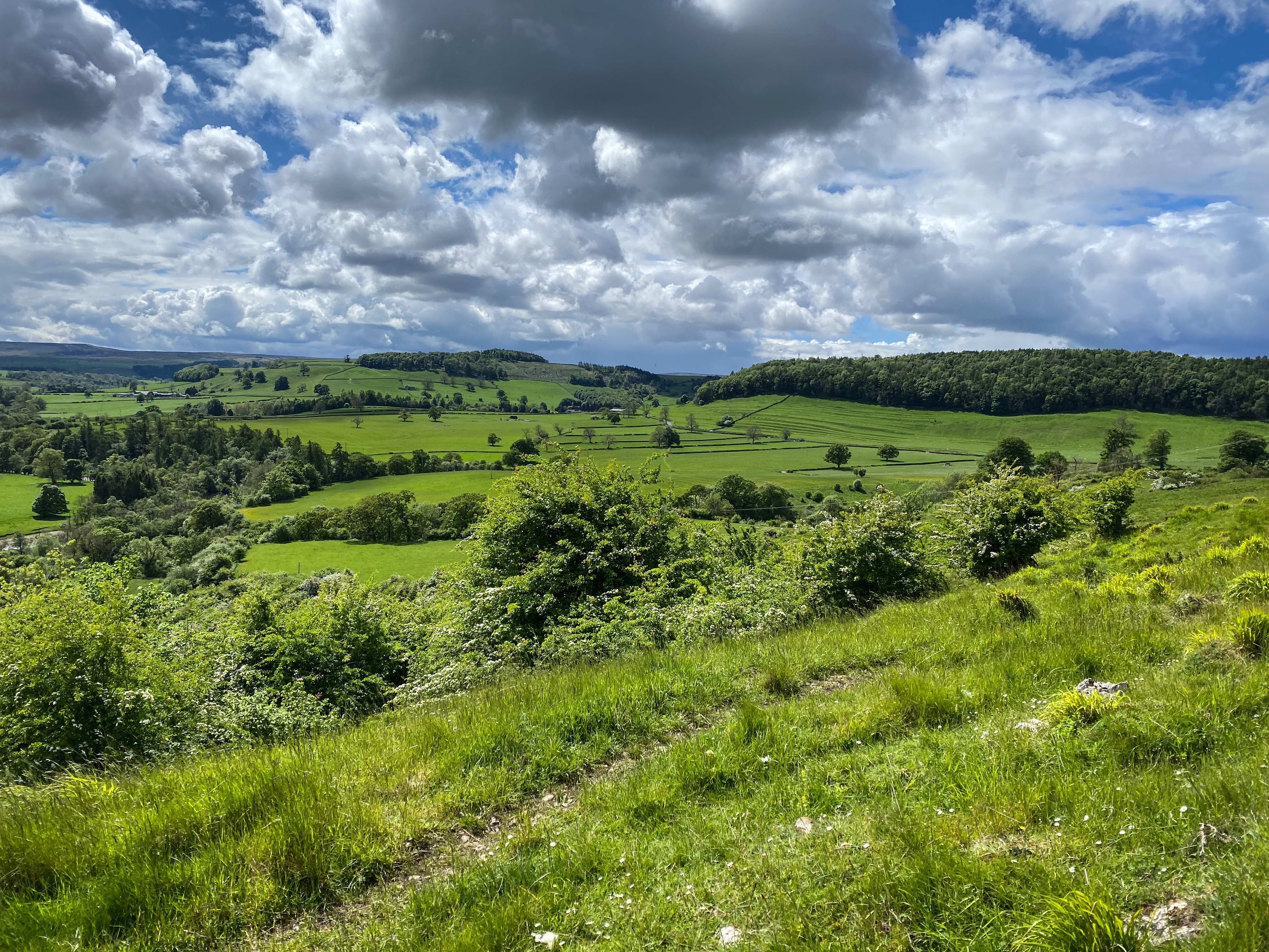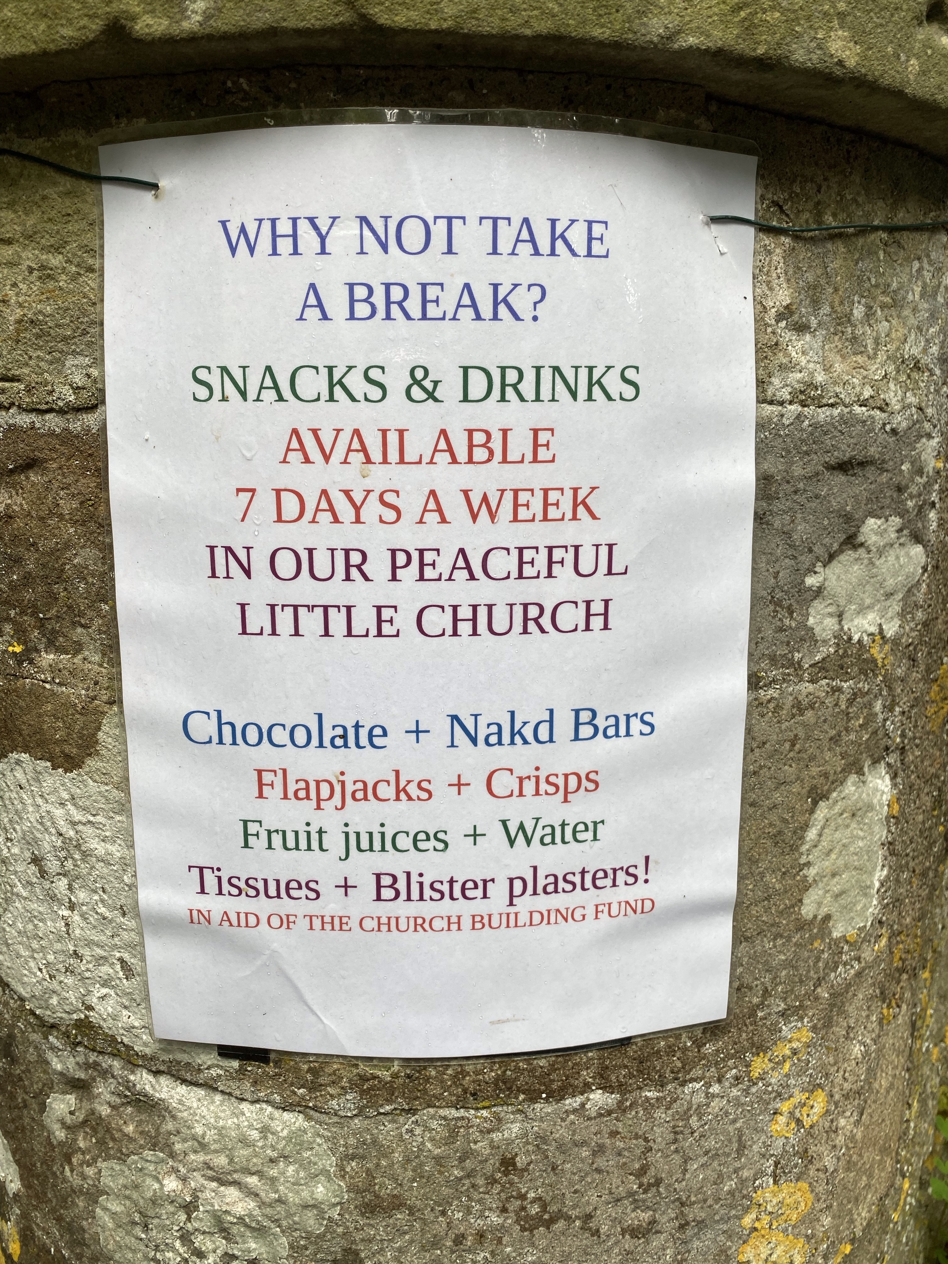 Most of the day was spent walking through pastures and squeezing through stiles. Busy talking, we missed one stile at a road crossing, so we just followed the road into town where we got back on the trail. It was actually an easier walk as we didn’t have to climb up on that part. Not having slept well last night, I was getting pretty tired by the time we got to Richmond. (It’s amazing to me how we can be so tired at the end of the day’s walk but after a good night’s sleep, we wake up in the morning ready to go again.) I had planned on going to see the castle this time since I didn’t in 2015. I was so tired, though, I opted for a hot shower and rest before we went out to eat. In Richmond, we are the only guests at Nuns Cottage. It is a very comfortable place near the downtown center and best of all, our host had fresh-out-of -the-oven scones for a cream tea for us when we arrived. They tasted heavenly! Tomorrow I’m having a home baked cinnamon “whirl” with my breakfast.