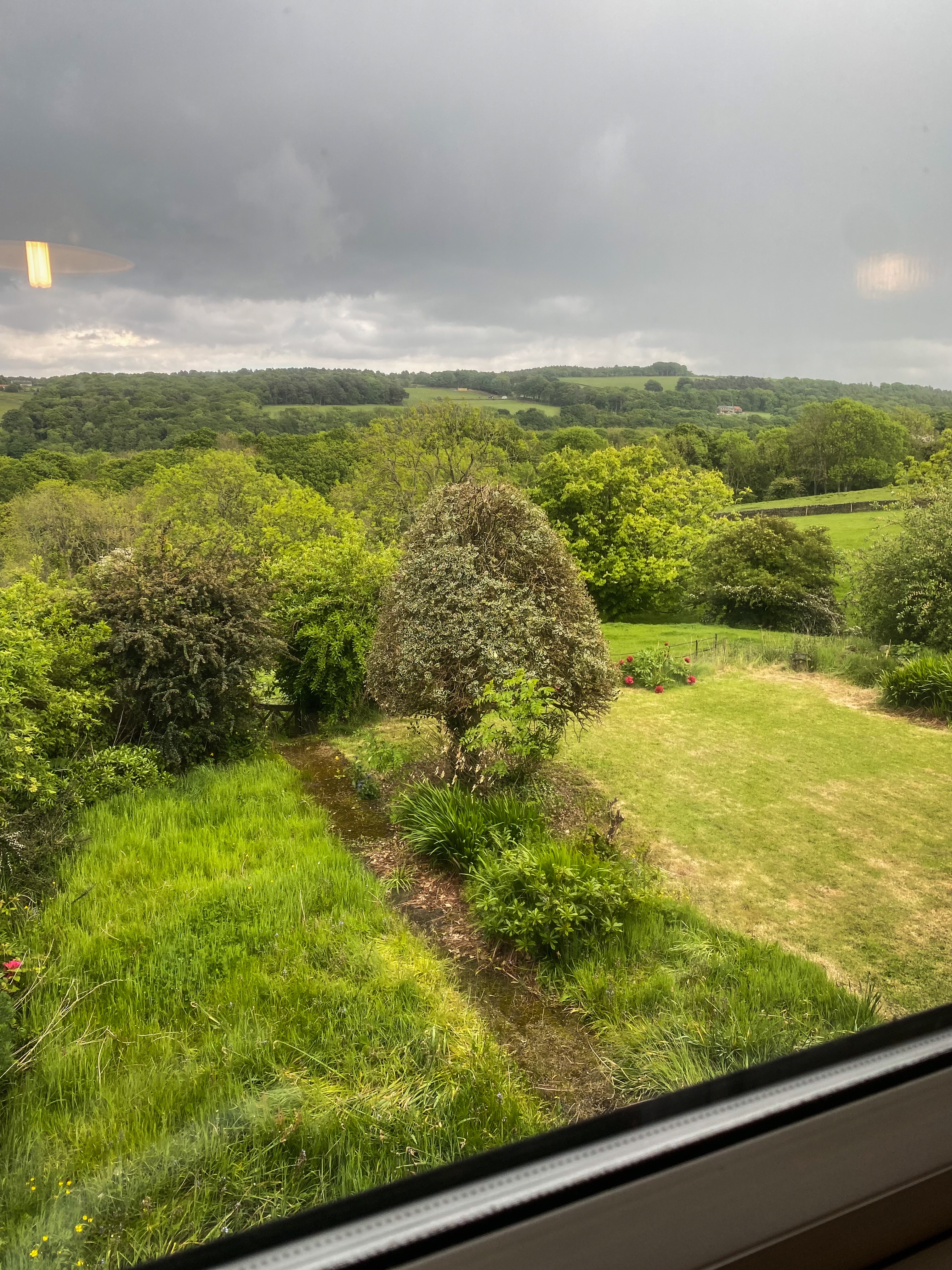 We arrived at Intake Farm just in time. As we went up to our rooms, we noticed it was hailing outside. The hail then turned to rain. Right now I’m sitting in the guests’ sitting room in front of a fire, thoroughly pleased with our day. Tomorrow is our last day of walking. I’m sad to see it end, but I must admit I am ready. Our goal is in sight!