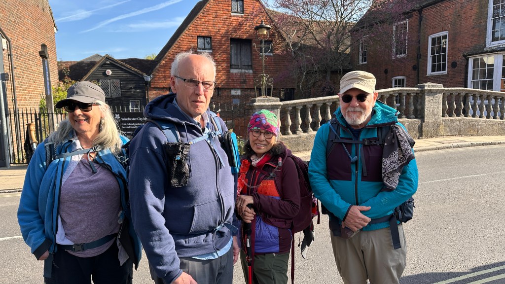 The reason for the extra miles today was because the guidebook’s route out of Winchester included crossing a very busy freeway and we opted not to do that. So, with the aid of our maps and a helpful young man, we went up to an overpass and then had to find our way back to the path. We figured this added about two miles to the day. (I actually walked sixteen miles today because I went out for a walk before breakfast!)