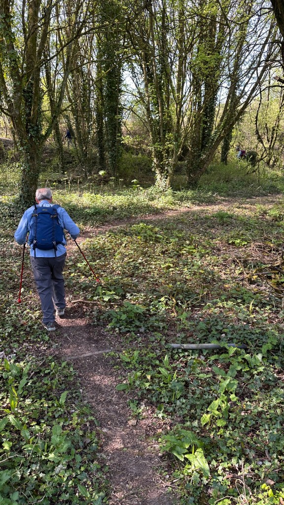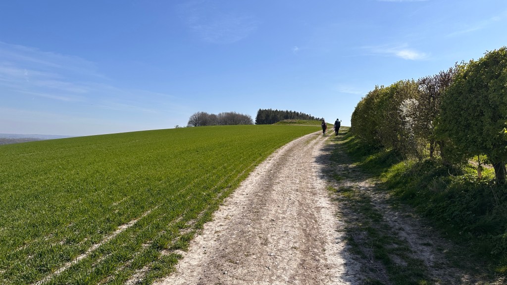 One highlight of the day was when we met a young man on his farm. He told us about an archaeological area just after his farm. Then when we were almost up the next hill he came by in his pickup with his two young children and waited for us at the top of the hill. He took us a few feet off the trail to show us where archeologists and his family worked together to reclaim a medieval dew pond. (An artificial pond that is usually on a hill and is situated so that dew collects in it.) We had quite an interesting talk, and he told us his children are the seventh generation of family to live there!