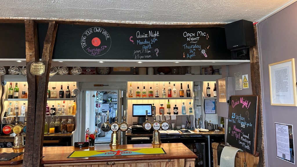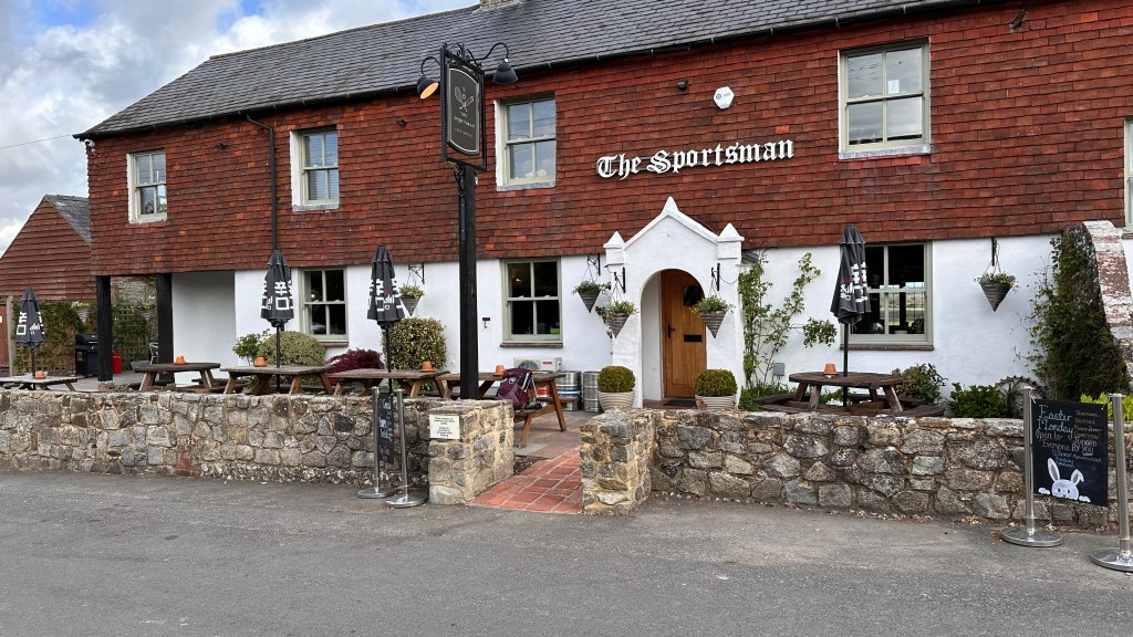 For the past two nights, we have stayed at The Sportsman Inn in Amberley. This is truly a neighborhood pub. The place was jumping when we arrived by taxi Sunday afternoon. Then last night, it was quiz night. The place was packed! (But from our room, we couldn’t hear them at all.) At lunchtime, the restaurant was busy, and as we walked back to our room, in a quiet corner there was a table of six people playing a card game. The landlord wants to sell and the community is afraid a developer will buy it, so they are trying to raise money to save it. It would be a shame to see such a lively spot shut down.