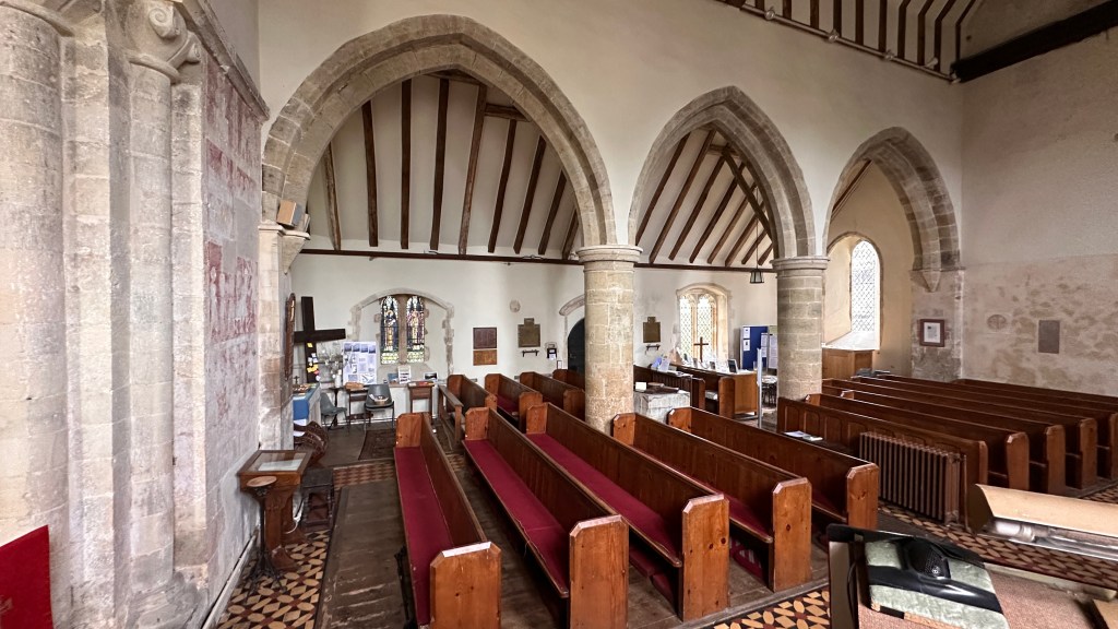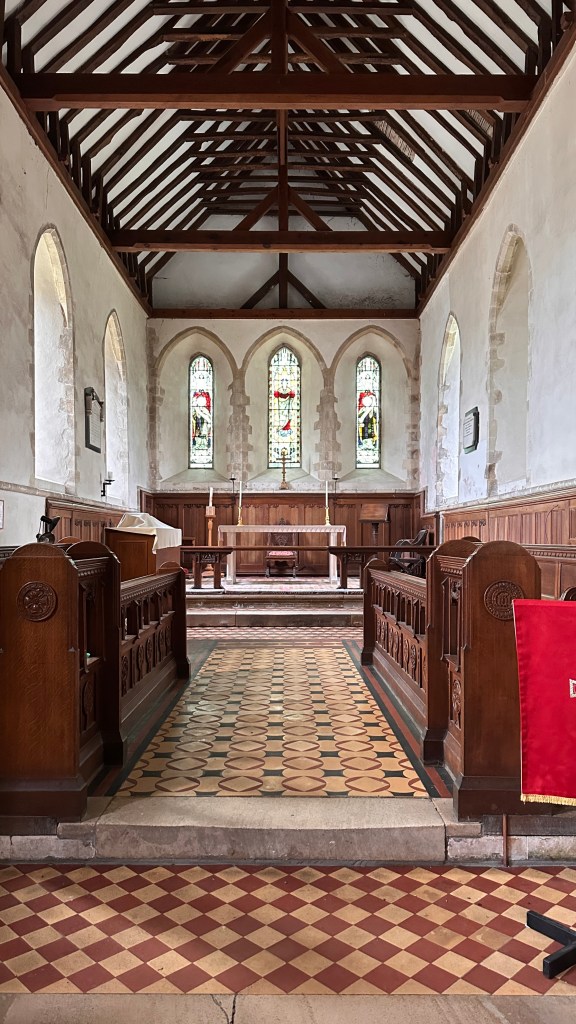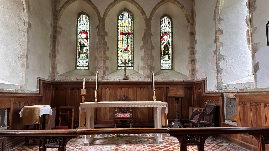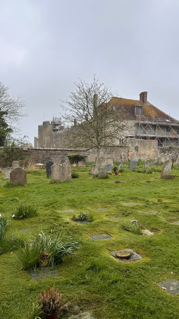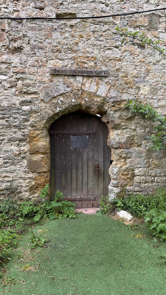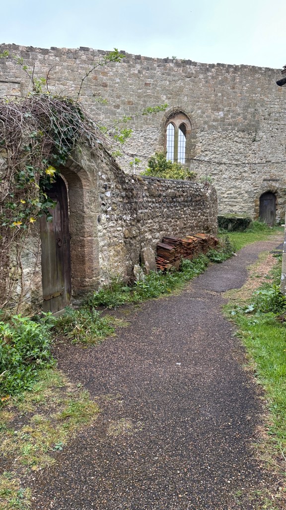 St. Michael’s Church is a little treasure in this village. The building of it began in 1091 and it has been used as a place of worship since at least 1103! We walked around the graveyard first and then were disappointed that the church door was locked. Right next to and behind the church is Amberley Castle. We walked around it a bit and could see where they are restoring it. The other (front?) part of the castle is actually a posh hotel now. I’ve seen photos of the front and it does look impressive but we didn’t feel like going to see it this morning and were satisfied with what we could see. As we were walking back past the church, an Australian couple asked us if we liked the church and we told them we were disappointed to find it locked. They assured it was not; they had thought the same at first, but figured out the trick of turning the latch and pushing extra hard. We talked to them a bit then went back to the church, so glad they had told us! I am continually amazed and in awe of these old buildings and the people who built them!