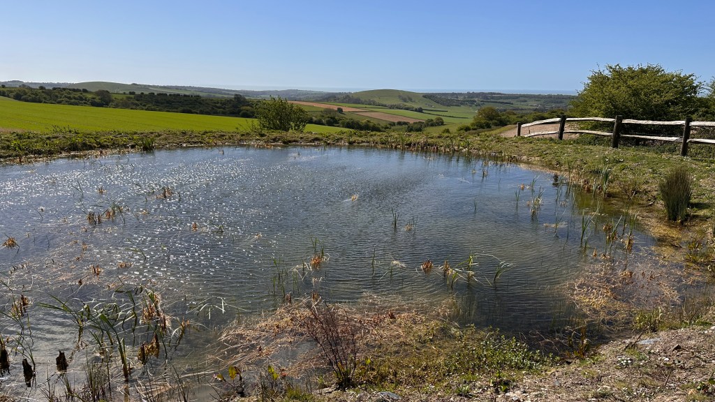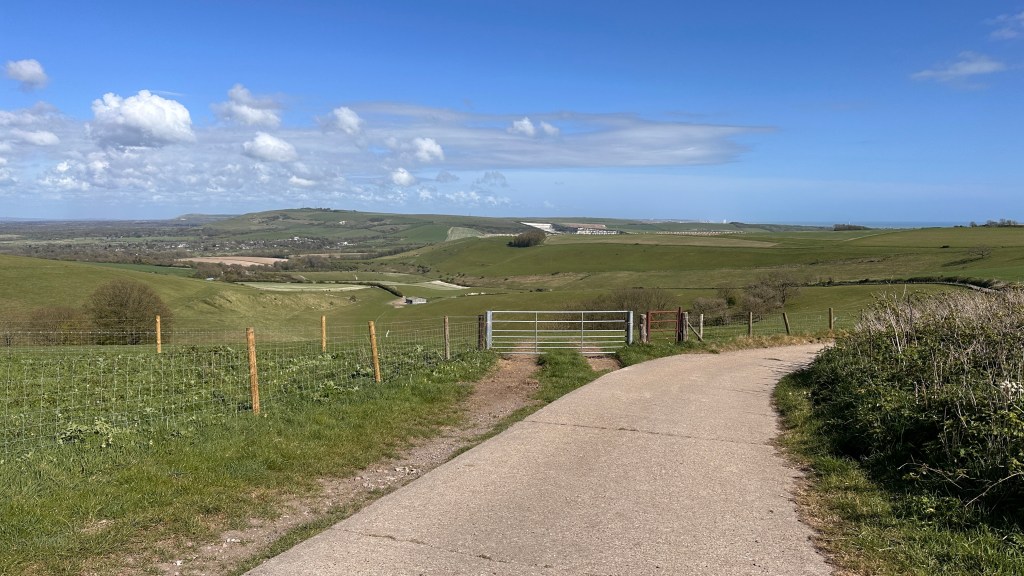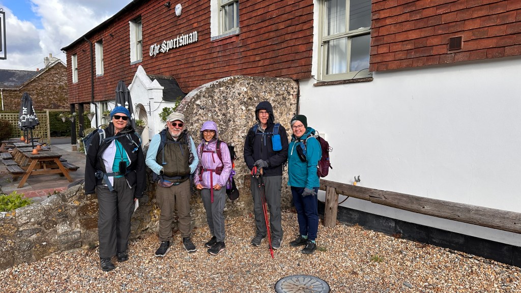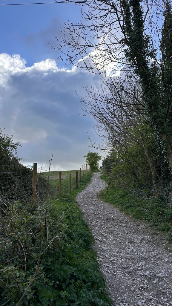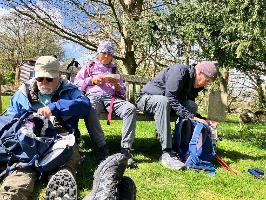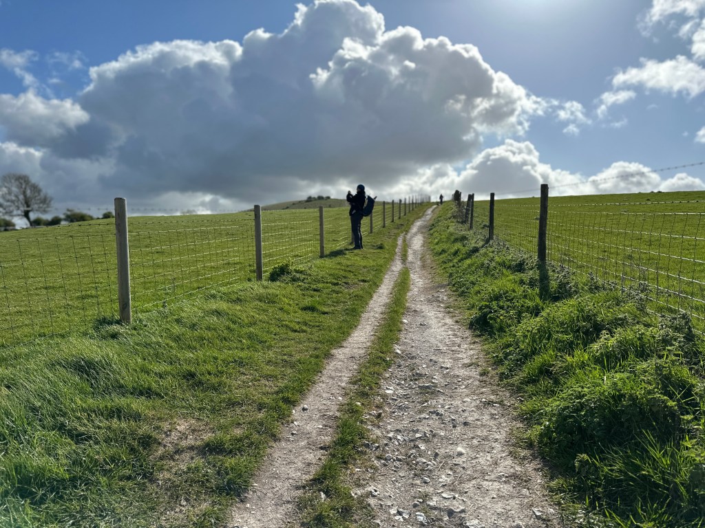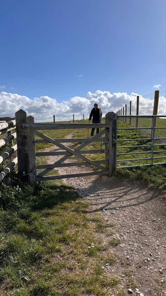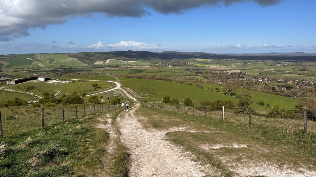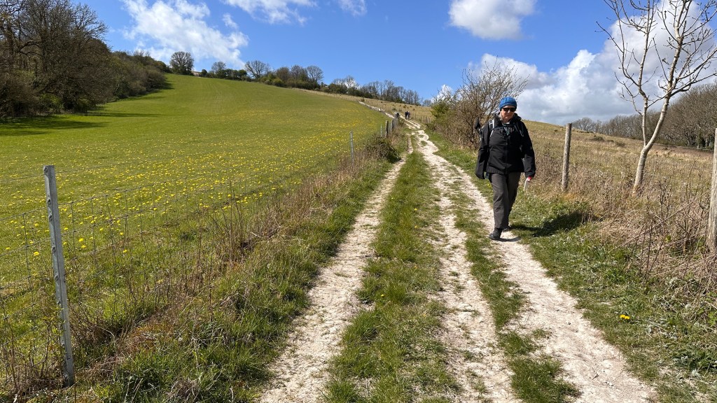 In order to avoid an extremely busy freeway crossing, we took a detour from the South Downs Way and went through Washington, a little village with an inviting bench in the graveyard next to the church. It was a welcome spot for lunch. Crossing the freeway on the pedestrian bridge and seeing all the traffic below, we were so thankful we had taken the detour!