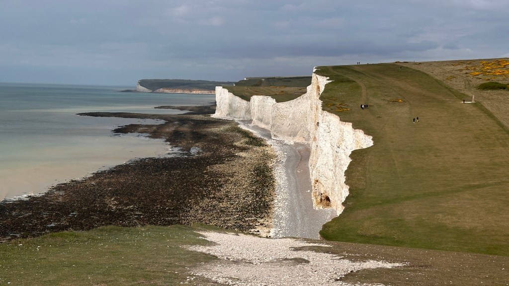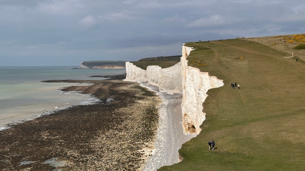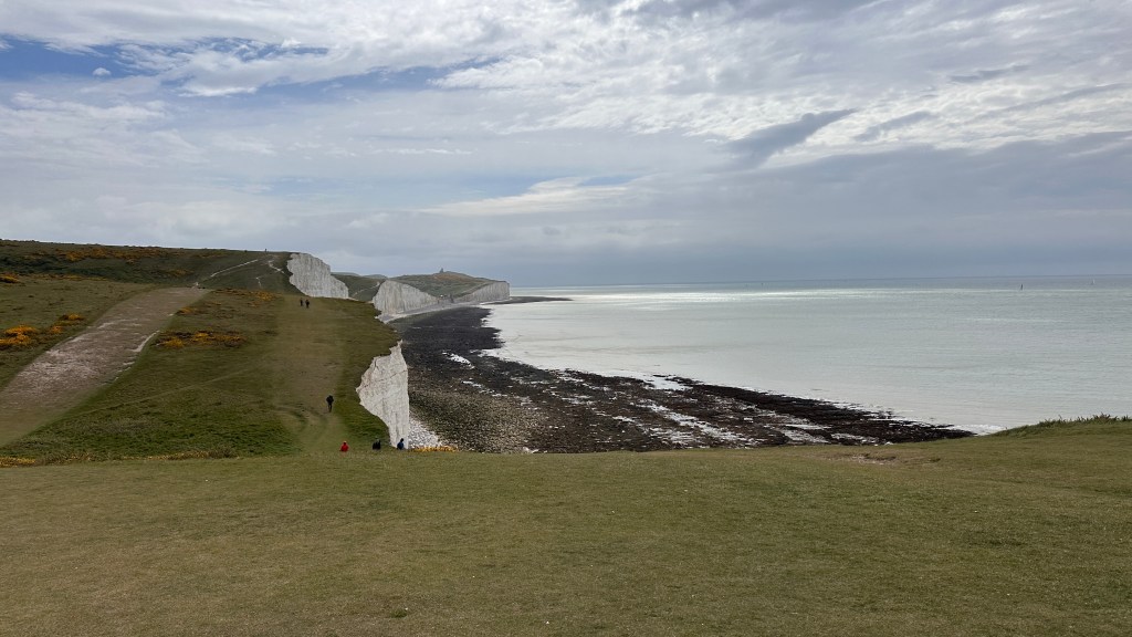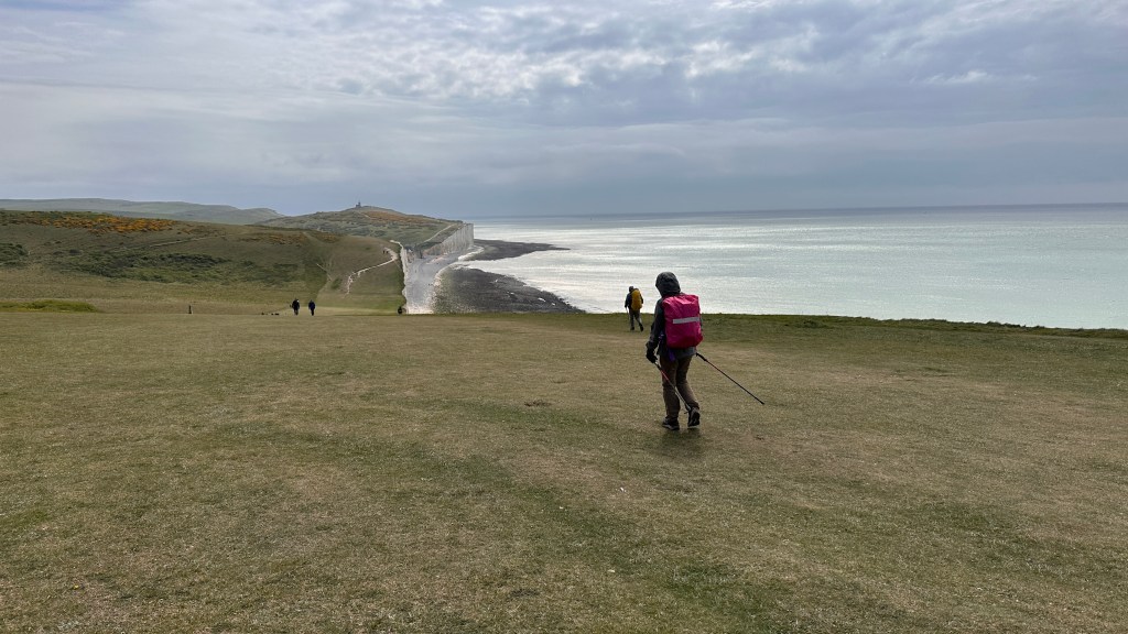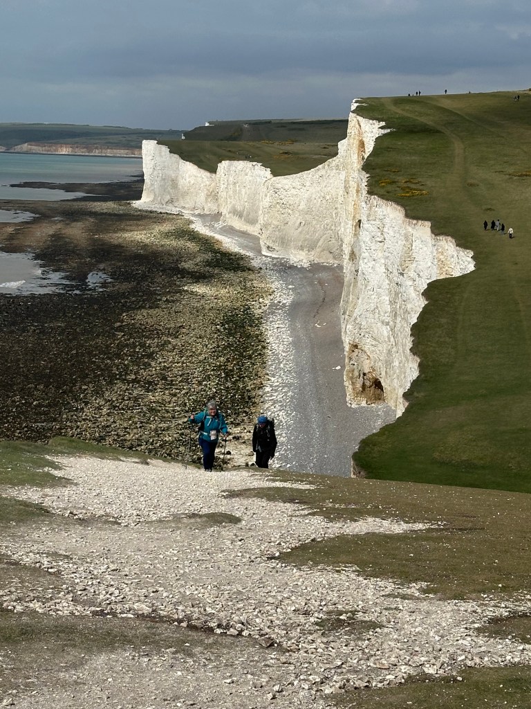 The Seven Sisters are a series of spectacular chalk cliffs. And of course, if you are walking along the top, that means you are going up and down over the peaks and valleys—seven hills. Thus, the reason for wanting to still be feeling fit when we got to them.