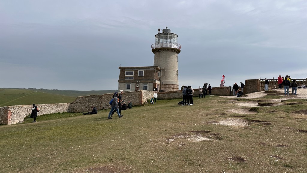 There had been a smattering of rain when we were on top of the cliffs but that ended quickly. After lunch, the wind seemed stronger and colder, but maybe that was because I was tired. Our afternoon started with another steep climb to Belle Tout Lighthouse. The South Downs are a protected area, so the cliffs are allowed to erode naturally and the lighthouse was actually moved back from the edge at one point. (It is now used as a B&B!)