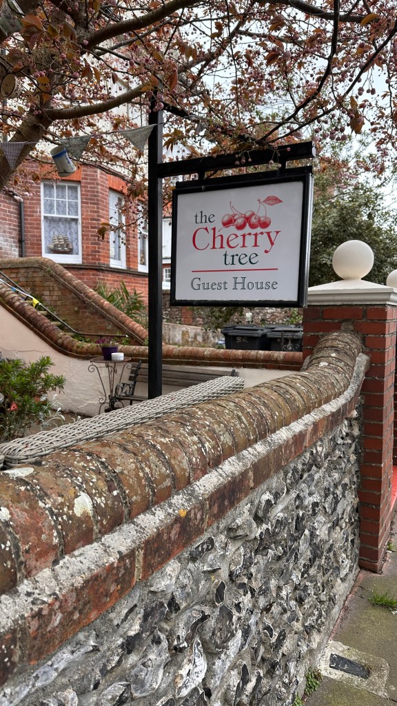 If we had stopped at this point, I would have been perfectly content, but we had another long climb to Beachy Head. The wind continued blowing fiercely and I was tired. David and Nancy both admitted to being tired and ready to take the bus. June and John were still going strong, though, so they continued on to the official end of the trail and in to Eastbourne. The three of us caught the bus at Beachy Head and then had an .8 mile walk through town to get to the Cherry Tree Guest House. Just as we stepped in the gate, we heard a shout, and there were John and June arriving from the other direction at exactly the same time. We were each happy with the finish we chose for the South Downs Way!
