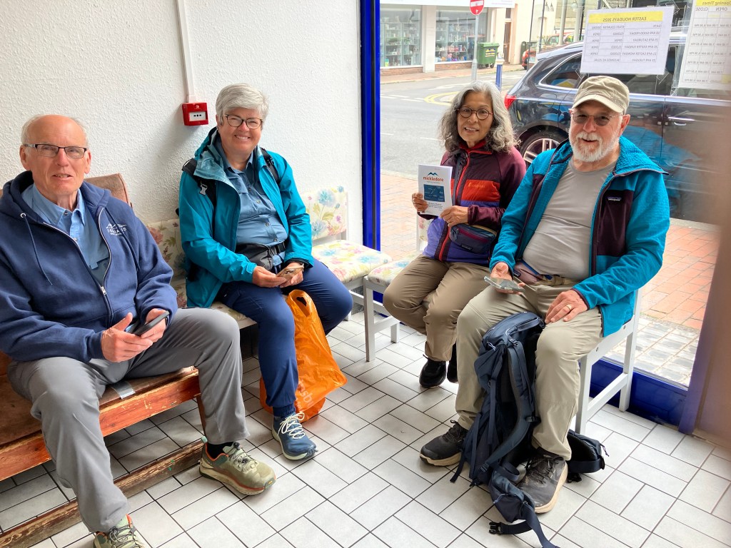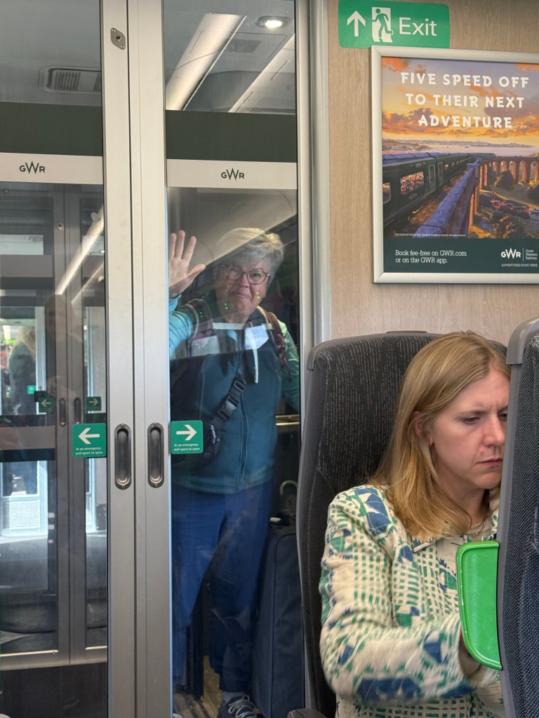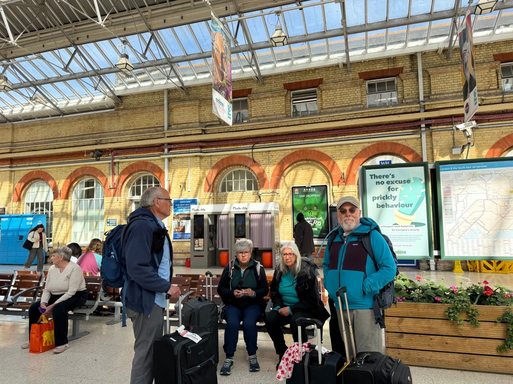 Today was our train ride to Moreton-in-Marsh. This trip involved four train changes (that must be why they were so much cheaper than our other tickets) and manhandling our own luggage on and off the trains. Since I bought the tickets online for all of us I collected them and ended up with 17 credit card-size tickets and receipts. Instead of trying to sort them out, I thought I would just hang on to them all for everyone. A railway employee assured me that would be fine. I was a little worried about our first transfer because there was only three minutes between our arrival and the departure of our next train. I warned everyone of this and to be ready, but it went very smoothly because our next train was arriving next on the same platform. We all felt pretty smug for navigating that transfer so easily. We had a few more minutes at the next transfer, but there were more people crowding around to get on. Nancy, David, and I managed to get ourselves and suitcases off and turned around in time to see the door closing. Nancy lunged and hit the button to open the door, but all I could see was John and June being swept away on the train. I am not even going to try to describe the rest of the trip. Suffice it to say we were reunited, had to figure out getting from one platform to another platform on a different level (it was not just a simple elevator ride) and then we missed our last train. This all involved a lot of befuddlement and questioning of railway employees. We were finally taken under the wing of a railway agent who got our tickets endorsed so that we didn’t have to buy new ones and actually stayed with us and pre-boarded us on the next train! It’s an understatement to say we were all relieved to get to Moreton-in-Marsh.