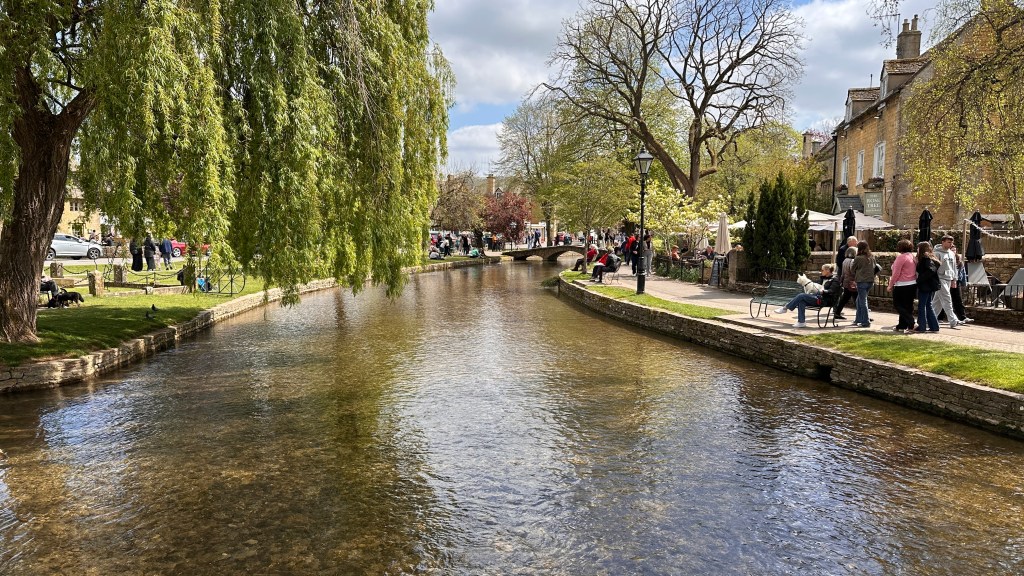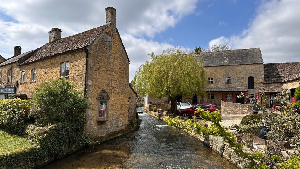 We arrived in Bourton-on-the-Water to find the place teeming with visitors. Since this isn’t the tourist season yet, I can only imagine how crowded it must get when it is. The village is called “Venice of the Cotswolds” because it has five bridges crossing the river. We found a little tea room to have lunch and then went our separate ways.