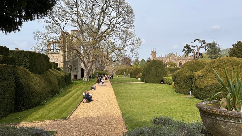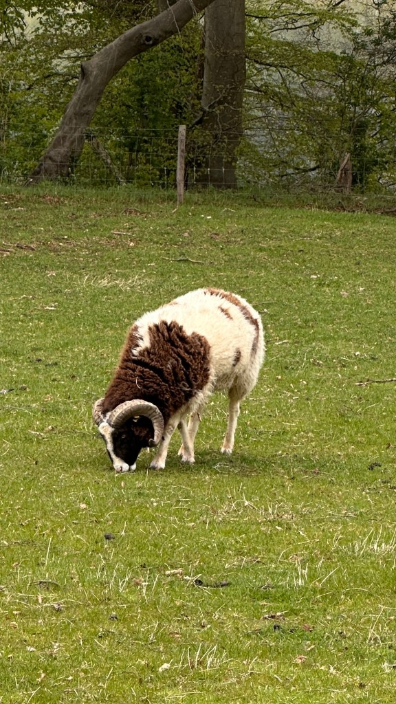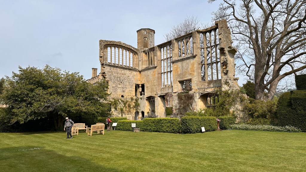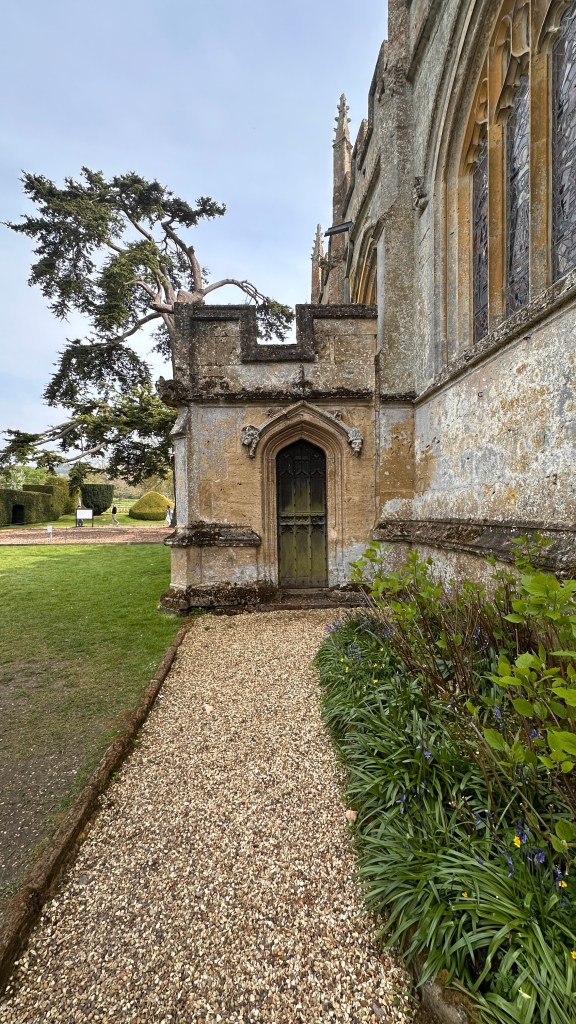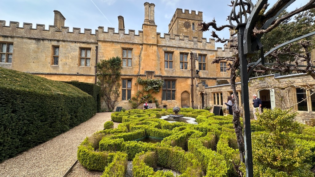 For much of the day, we walked past some big estates on one side and woodlands that are conservation areas on the other side. Then it was along side the sheep fields and down to Sudeley Castle. David opted to not go in and I was relieved to leave my backpack off as I wandered around the castle on my own, That place was overwhelming. They had many historical displays and rooms, a church, and extensive gardens. There was information to read everywhere and short films to watch. The castle’s history is long! Henry VIII’s last wife, Katherine Parr is buried there. Anyway, after an hour and a half of wandering, I suddenly became exhausted and decided to join David. All five of us met up outside about the same time. After some restorative ice cream, we trekked the last half mile into Winchcombe.
