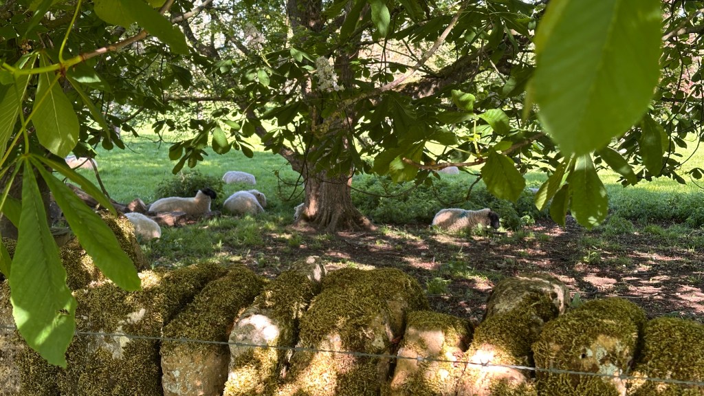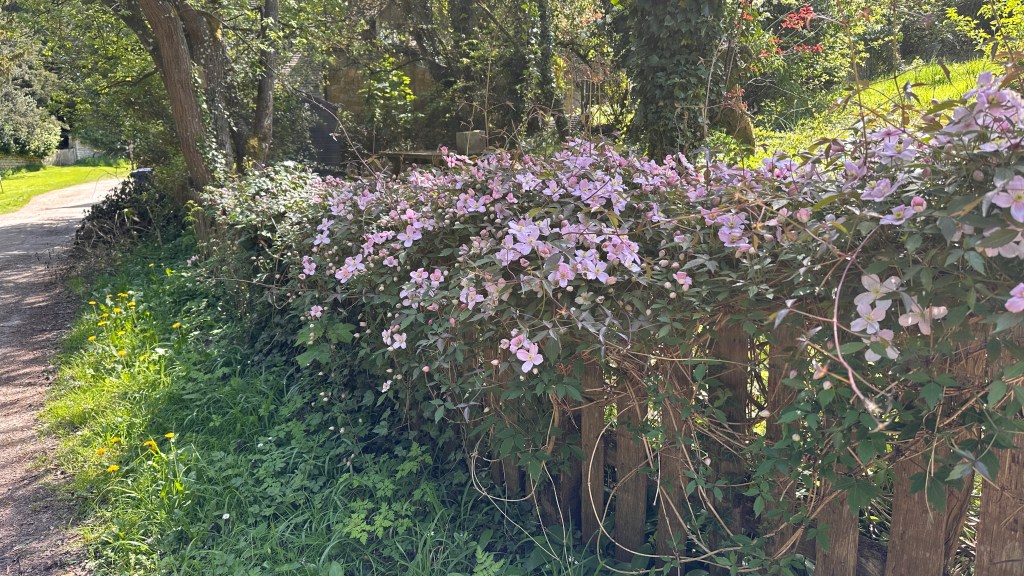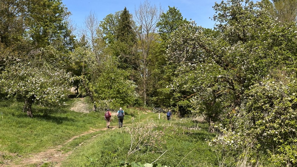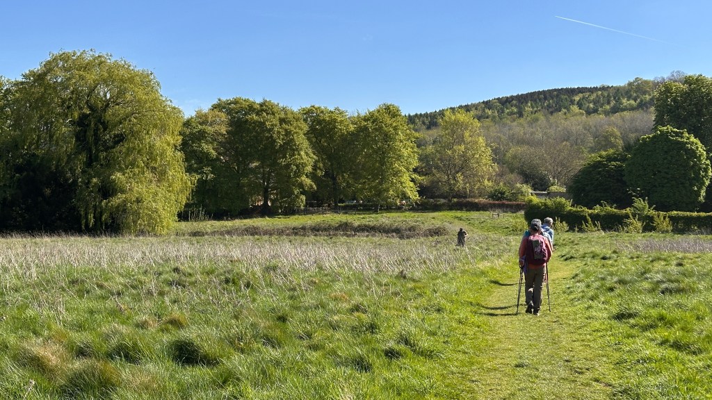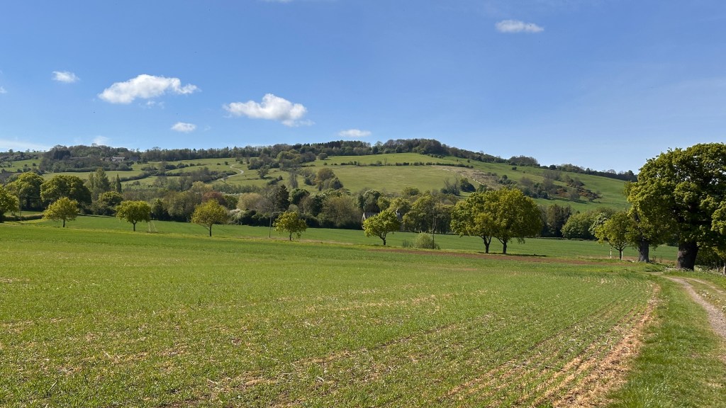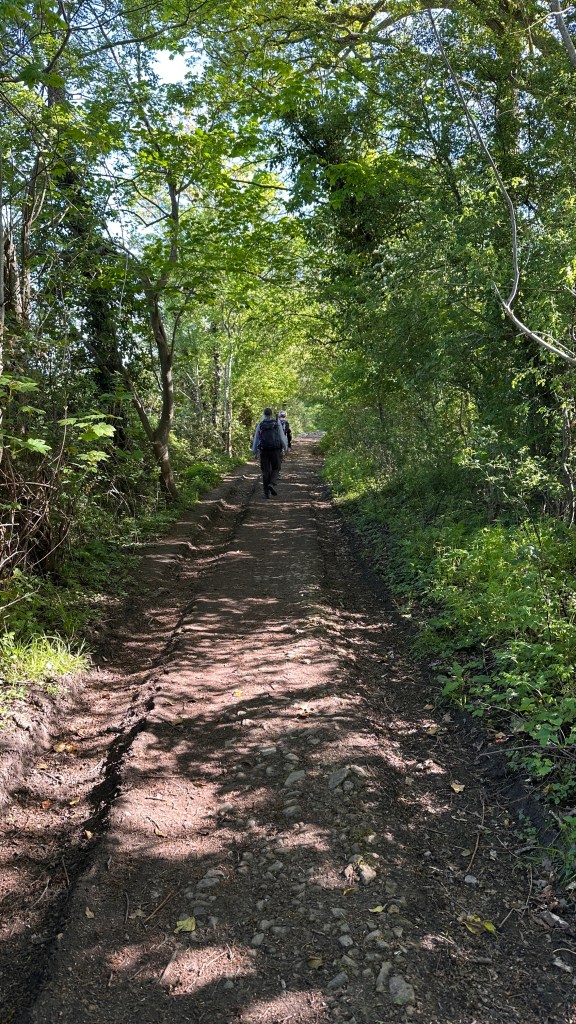 It was an absolutely gorgeous day. As we left Winchcombe behind, the church bells were chiming, the birds were singing, and occasionally we could hear the whistle of a steam engine on an excursion train. It made a beautiful melody. The trees were magnificent and I wanted to take a photo every few hundred feet. At two miles, we had planned to stop at Hailes Abbey; we were disappointed, though, to see the sign stating they were only open for pre-booked tours. David and I stopped here in 2017 and were able to tour the grounds and visit their excellent museum. It’s was such a memorable stop, I was looking forward to sharing it with Nancy, June, and John. We couldn’t even see the ruins from the road. We moved on, and parts of the road became more familiar to me as we followed the Cotswold Way through Stanway and on to Stanton.