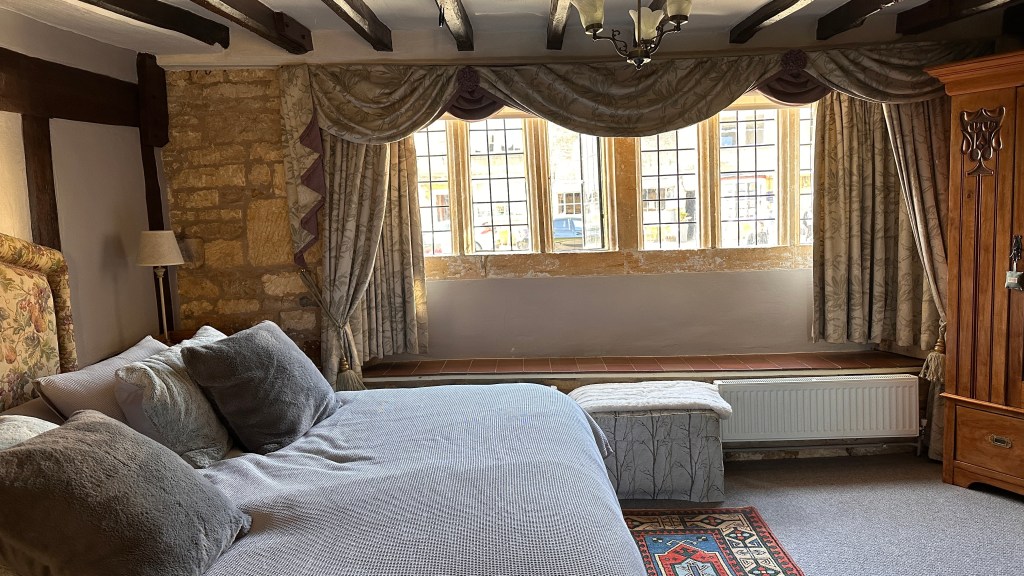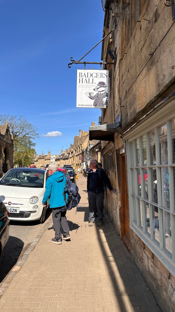 We arrived in Stanton at 1:30 despite our dawdling. Stanton has no shops and just one pub up a steep hill. I remembered that climb from our stay here in 2017 and was not inclined to go up. We all waited in the shade by the war memorial for the taxi, except for June who wandered off down the lane towards the pub. She soon was back with the surprise of a cool drink for us. It was much appreciated! Our taxi arrived promptly at 2:15 to take us to Chipping Camden. We couldn’t check in to Badger Hall until 4:00, so after ringing the bell with no response and a bit more dithering we ended up going to a tea house. David and I both enjoyed a fruit scone with clotted cream and strawberry jam, which ruined us for dinner. We spent the time until four sitting in the sun laughing and discussing the trials and tribulations of all the plumbing we have encountered. The showers have given us the most trouble once again. Some of the problems have included when I accidentally pulled part of the shower controls apart, cold water coming out of the shower head unexpectedly, (multiple times!) never knowing how to operate the shower, shower doors making it impossible to adjust the water without getting under the shower, settling for a bath when we wanted a shower because we really couldn’t figure out how to work it…I could go on but I’ll just end that here.